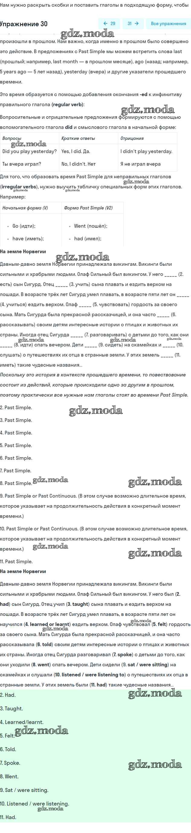 ОТВЕТ на задание № 30 Рабочая тетрадь по Английскому языку 7 класс Афанасьева Rainbow