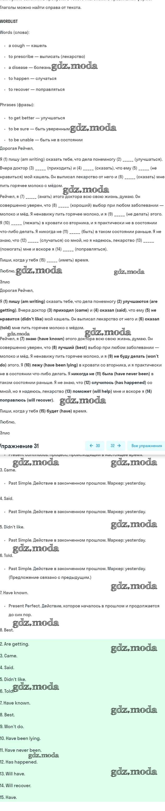ОТВЕТ на задание № 31 Рабочая тетрадь по Английскому языку 7 класс Афанасьева Rainbow