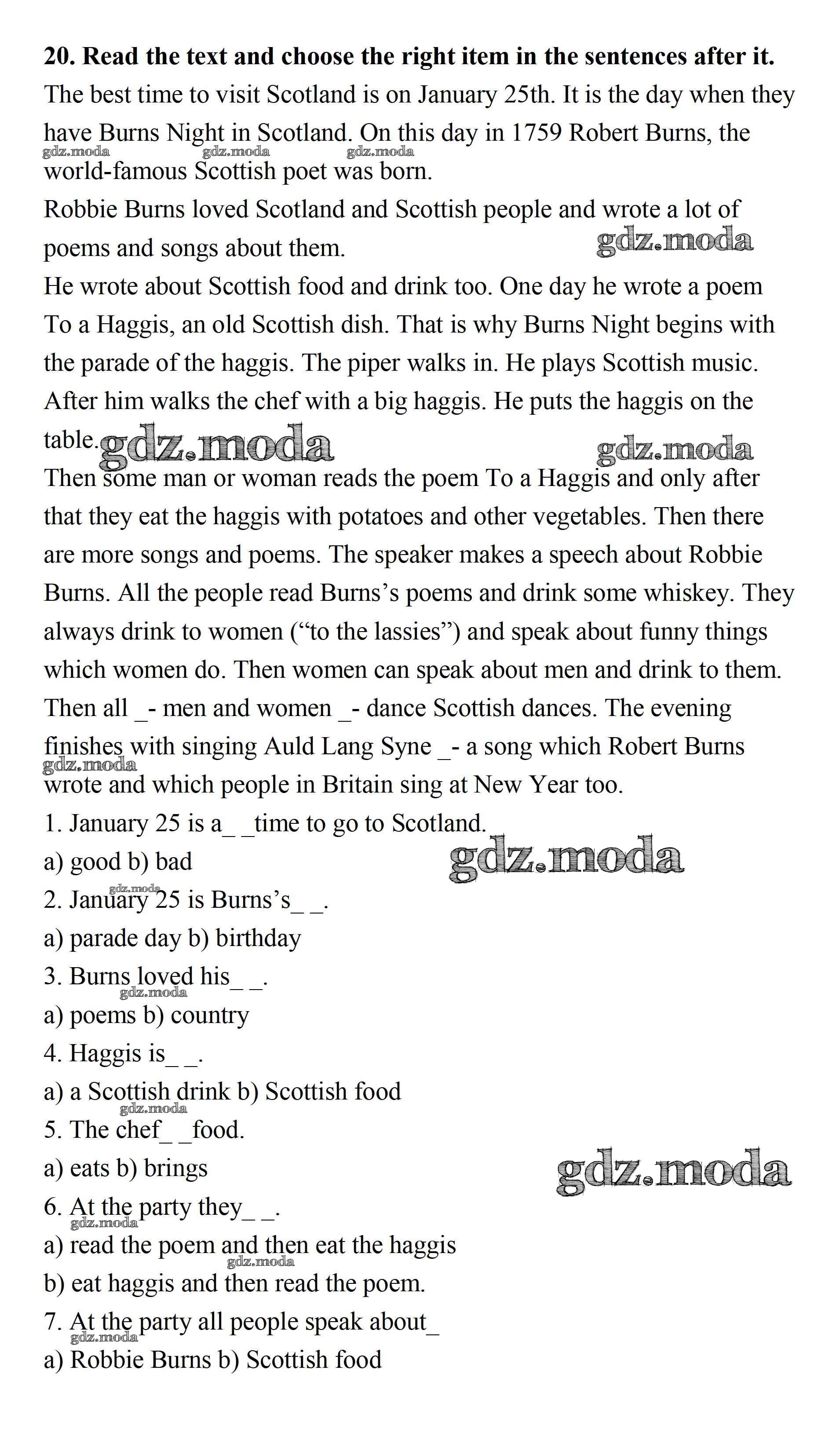 ГДЗ решение к заданию № 20 Английский язык 7 класс рабочая тетрадь Афанасьева Михеева (Новый курс) Дрофа 2017 Часть 1, Часть 2 ФГОС бесплатно на гдз.мода!