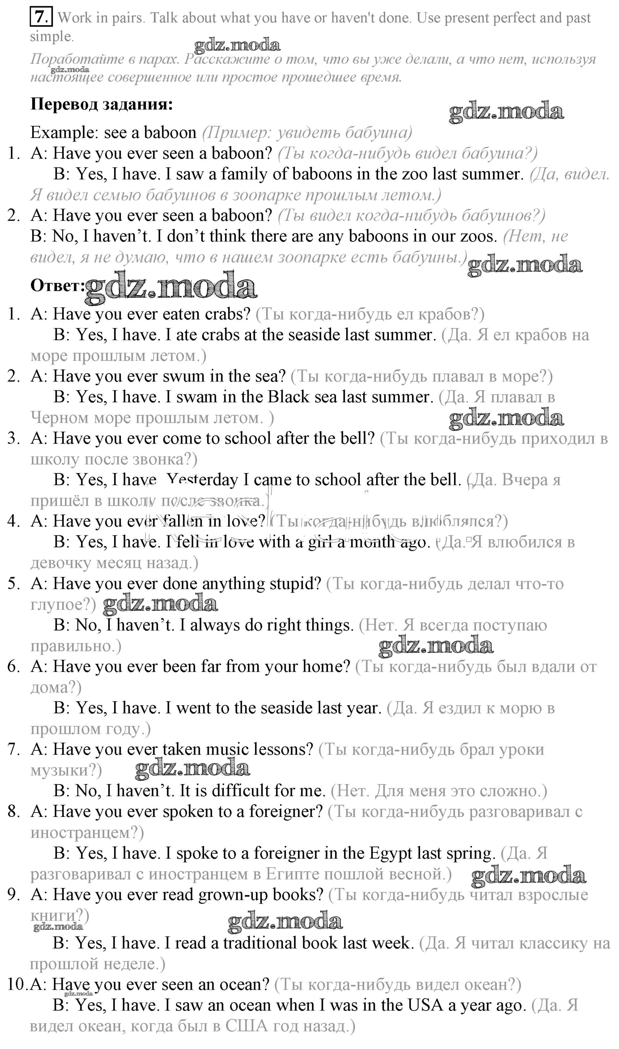 ОТВЕТ на задание № 7 Учебник по Английскому языку 7 класс Афанасьева Rainbow