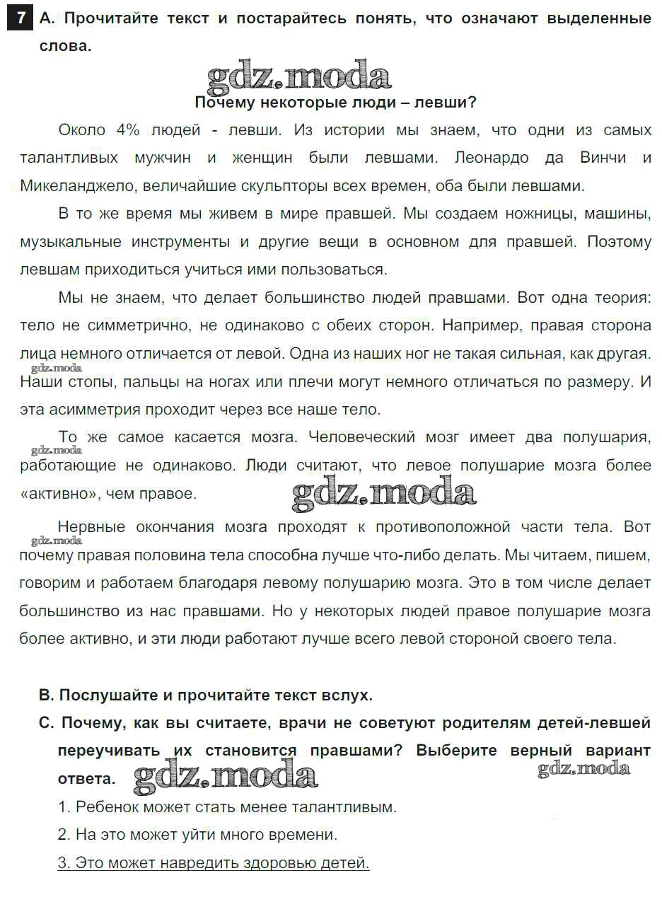 ОТВЕТ на задание № 7 Учебник по Английскому языку 7 класс Афанасьева Rainbow