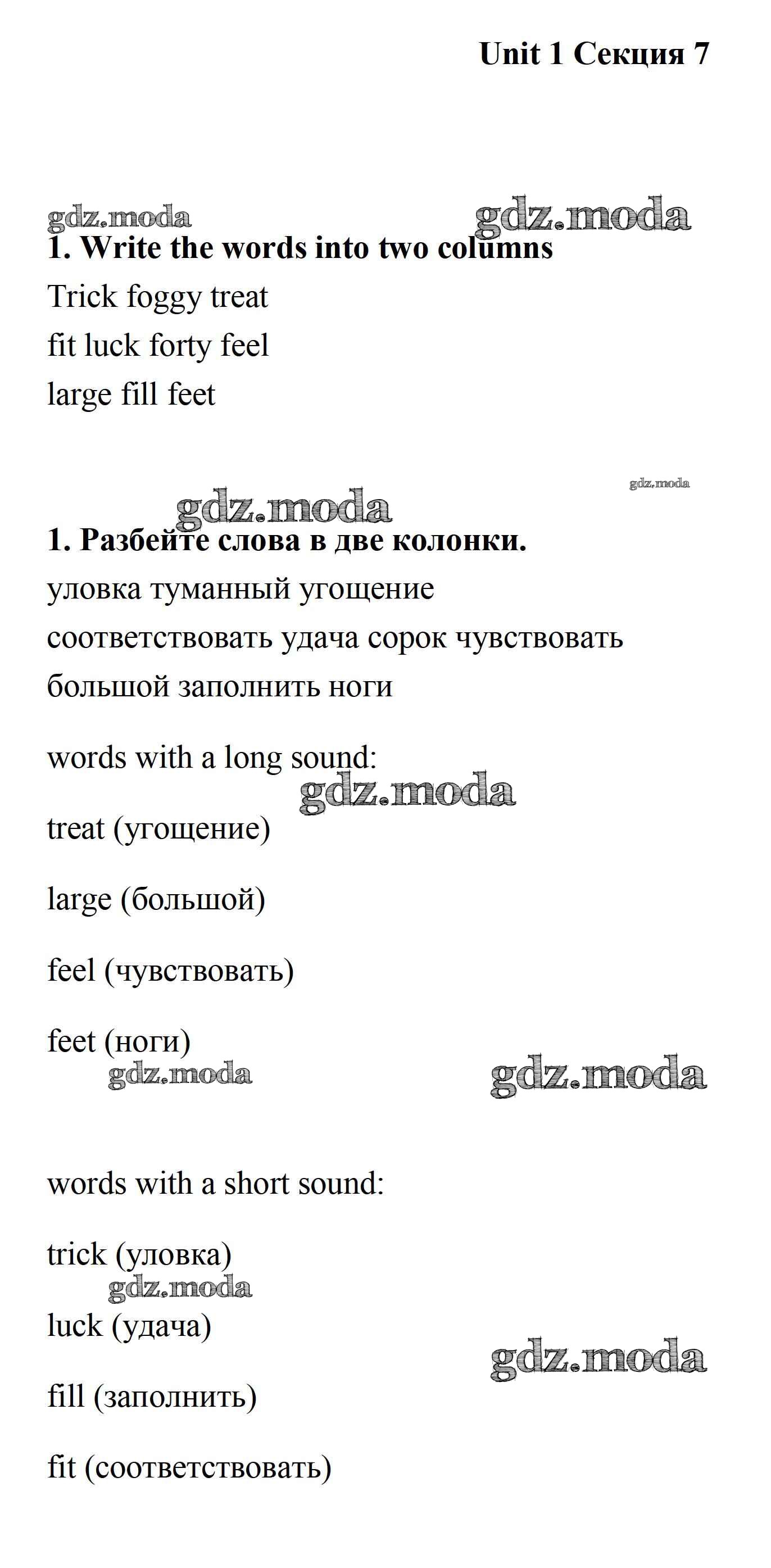 ОТВЕТ на задание № 1 Рабочая тетрадь по Английскому языку 7 класс Биболетова Enjoy English