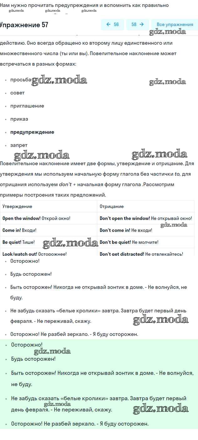 ОТВЕТ на задание № 57 Учебник по Английскому языку 7 класс Биболетова УМК