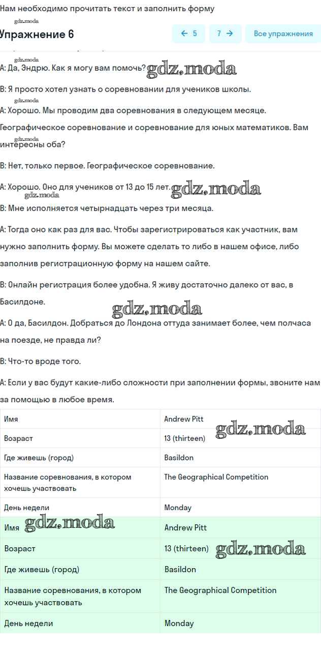 ОТВЕТ на задание № 6 Учебник по Английскому языку 7 класс Биболетова УМК