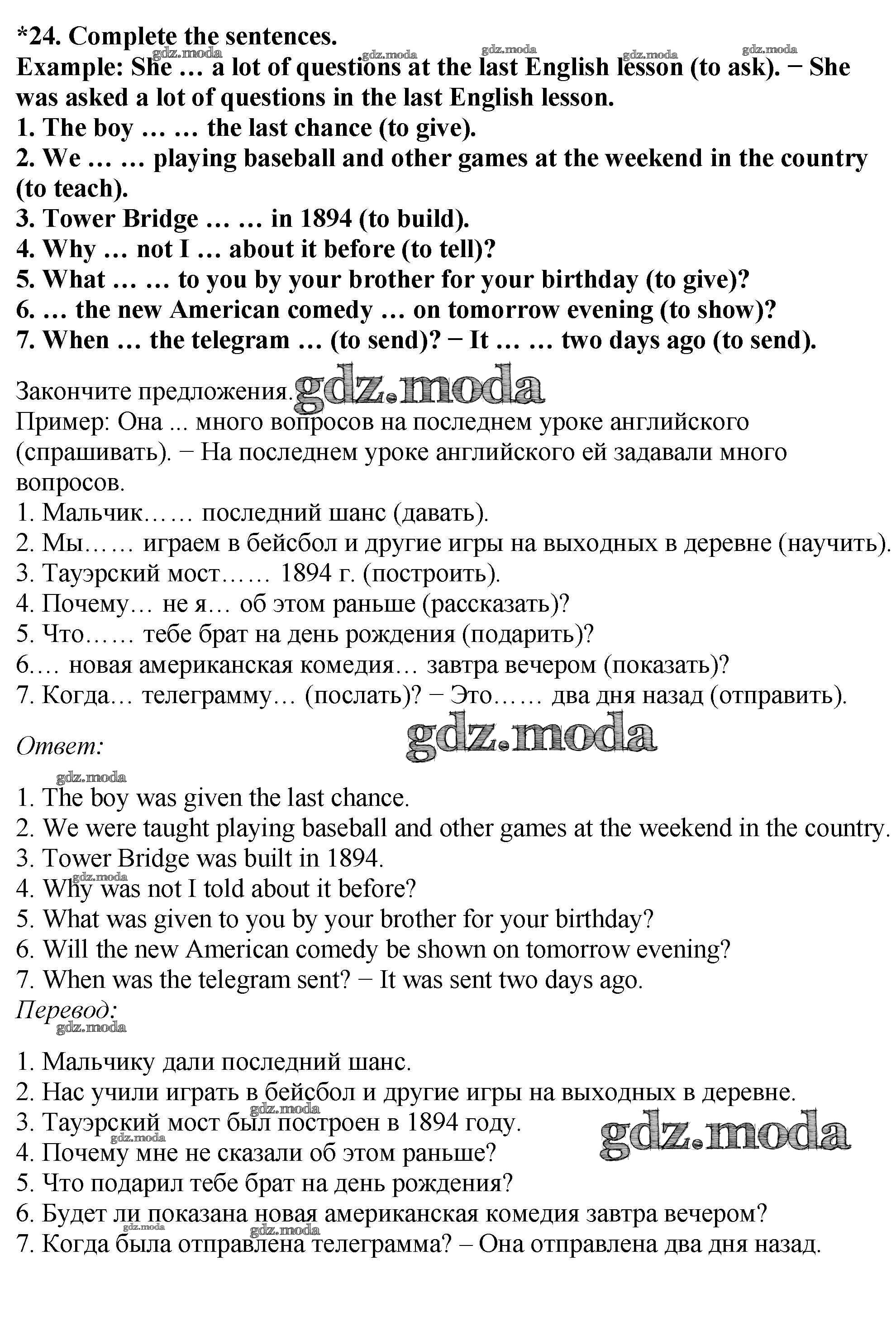 ОТВЕТ на задание № 24 Учебник по Английскому языку 7 класс Биболетова УМК