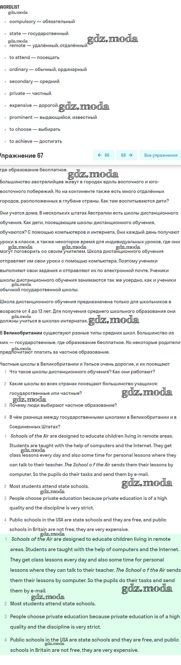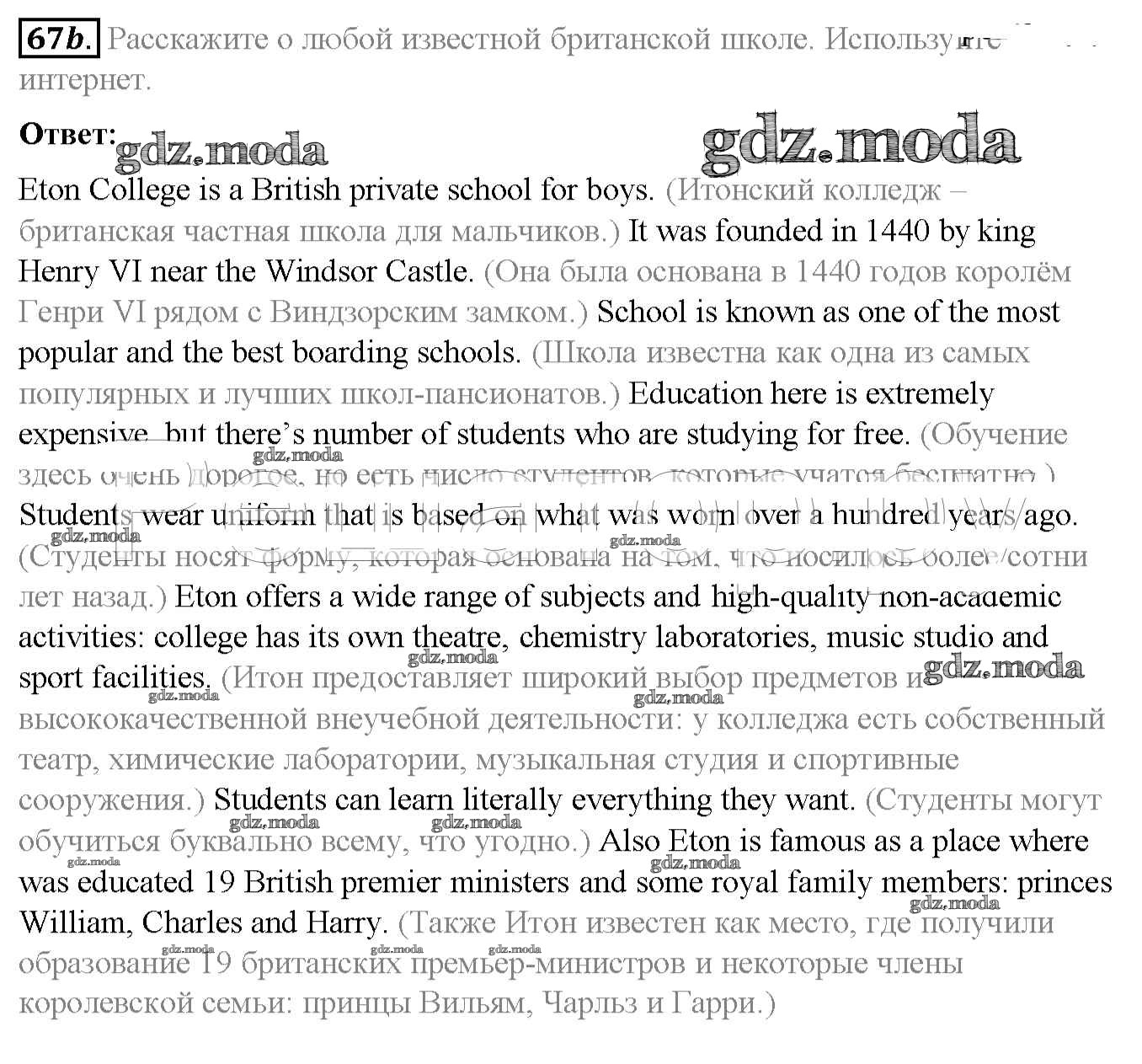 ОТВЕТ на задание № 67 Учебник по Английскому языку 7 класс Биболетова УМК