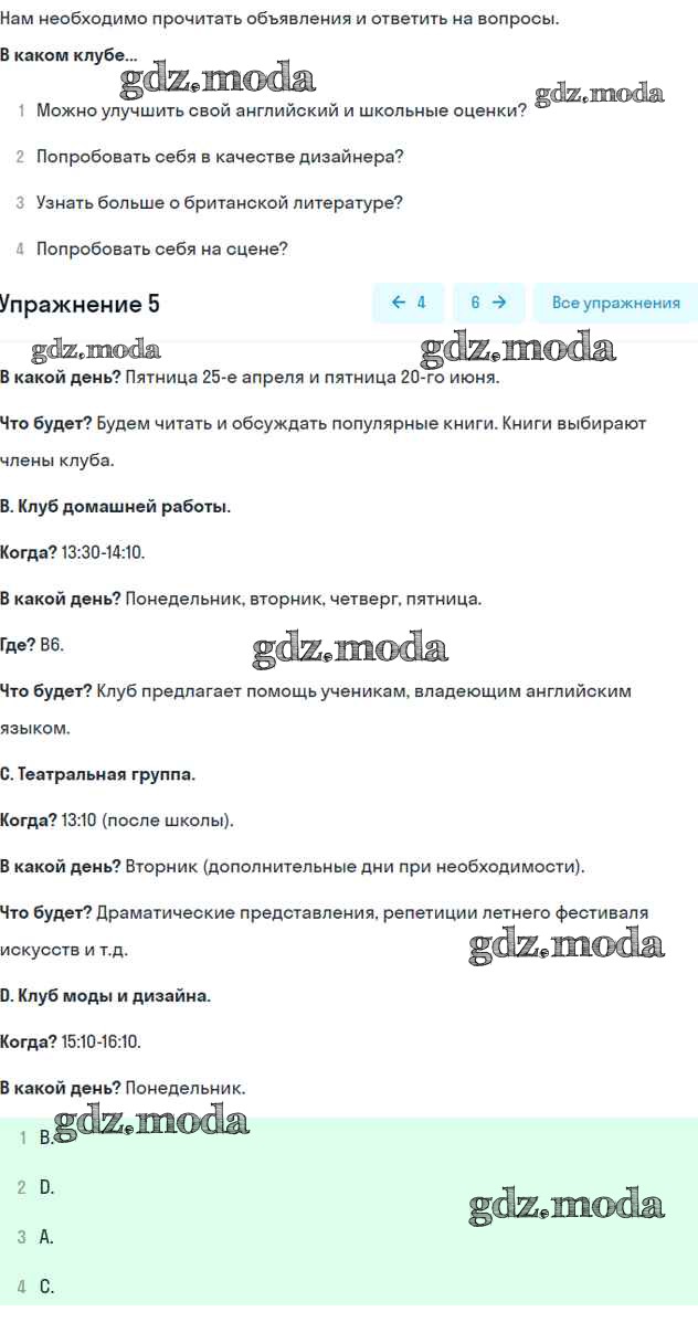 ОТВЕТ на задание № 5 Учебник по Английскому языку 7 класс Биболетова УМК