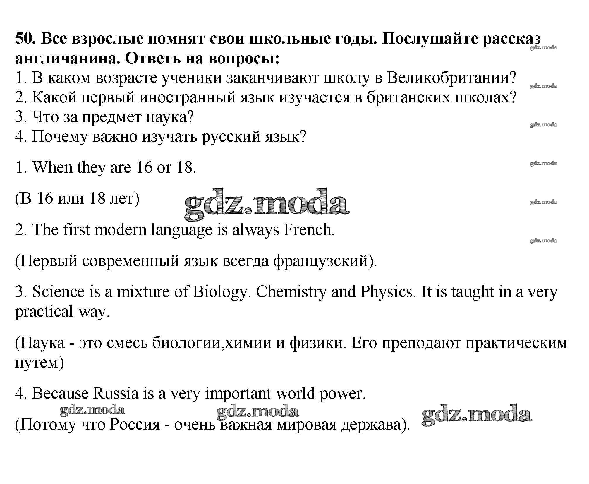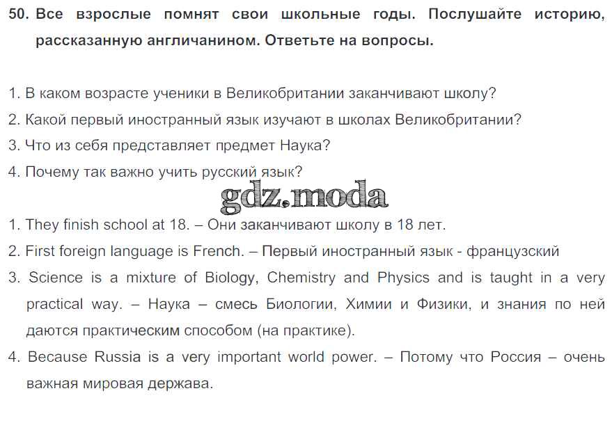 ОТВЕТ на задание № 50 Учебник по Английскому языку 7 класс Биболетова УМК