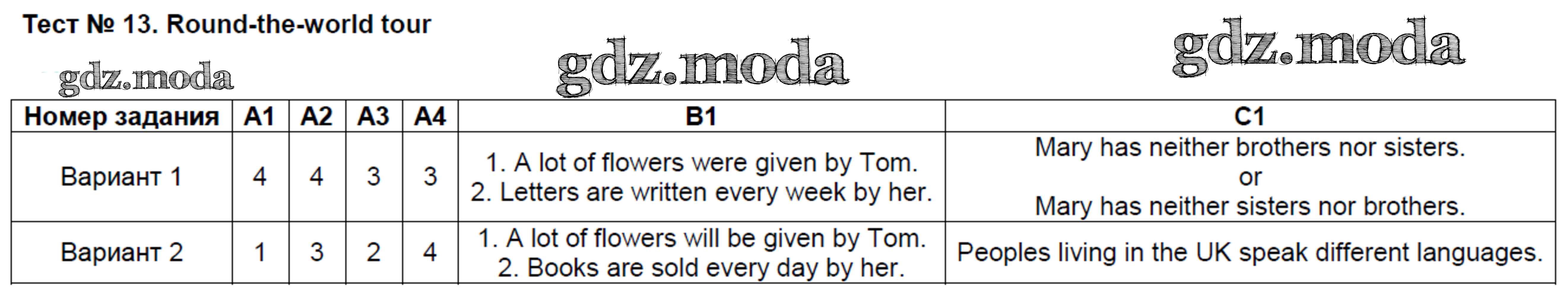ОТВЕТ на задание № 13 Контрольно-измерительные материалы (КИМ) по Английскому языку 7 класс Артюхова