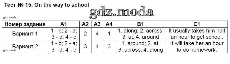 ОТВЕТ на задание № 15 Контрольно-измерительные материалы (КИМ) по Английскому языку 7 класс Артюхова