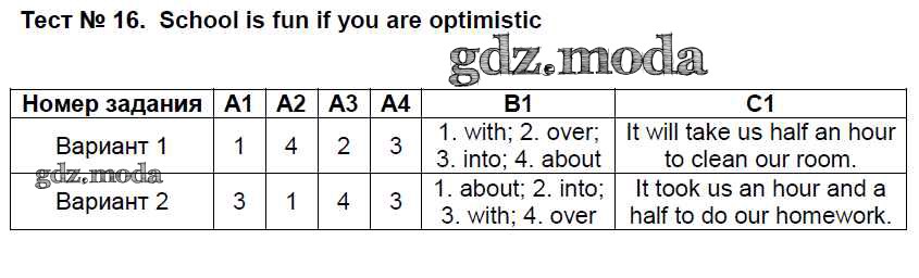ОТВЕТ на задание № 16 Контрольно-измерительные материалы (КИМ) по Английскому языку 7 класс Артюхова