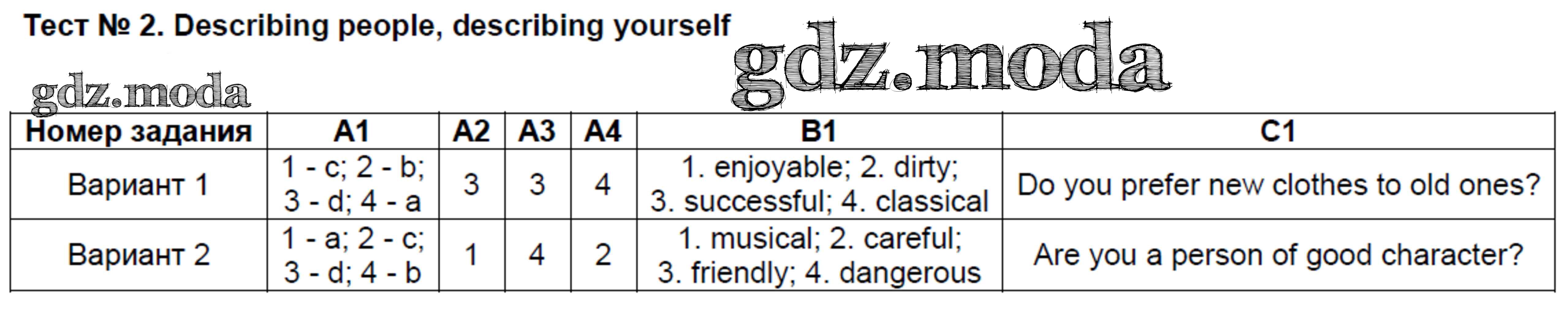 ОТВЕТ на задание № 2 Контрольно-измерительные материалы (КИМ) по Английскому языку 7 класс Артюхова