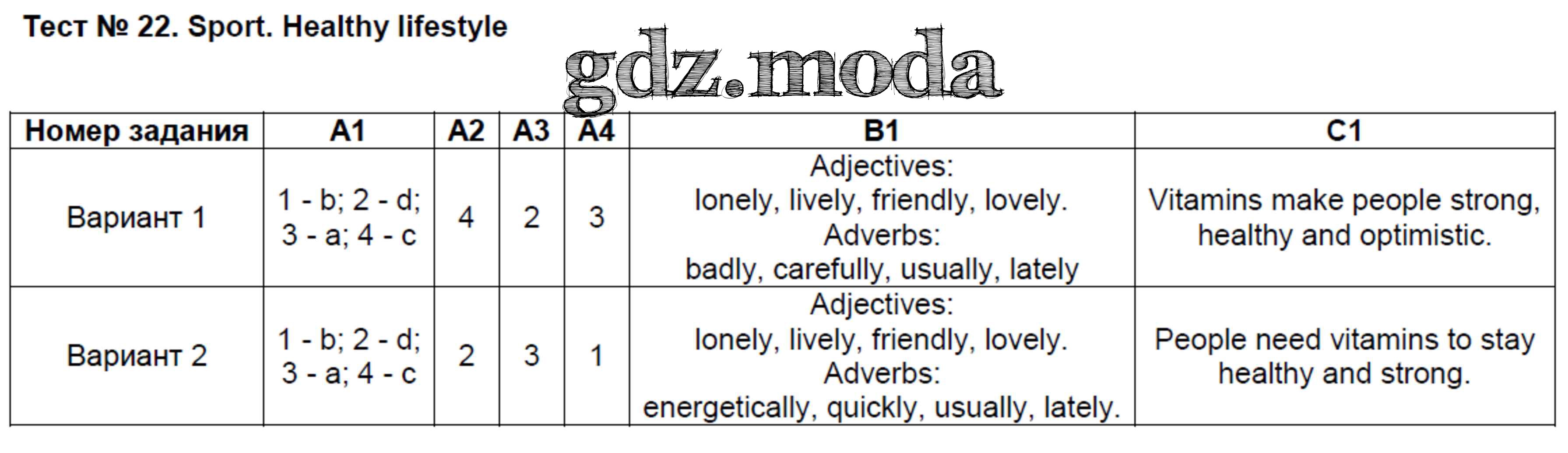 ОТВЕТ на задание № 22 Контрольно-измерительные материалы (КИМ) по Английскому языку 7 класс Артюхова
