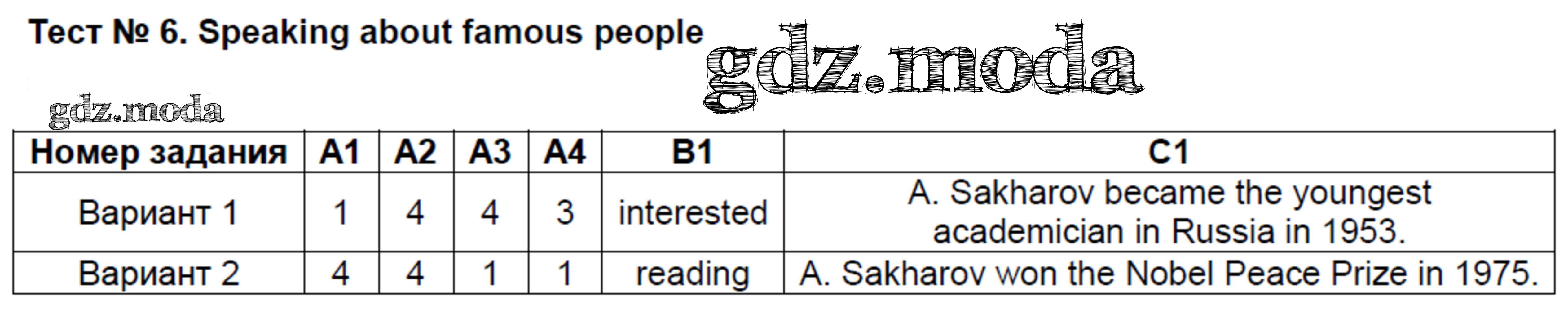 ГДЗ решение к заданию № 6 Английский язык 7 класс КИМ Артюхова И.В. ВАКО 2017 ФГОС бесплатно на гдз.мода!