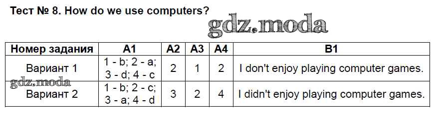 ОТВЕТ на задание № 8 Контрольно-измерительные материалы (КИМ) по Английскому языку 7 класс Артюхова
