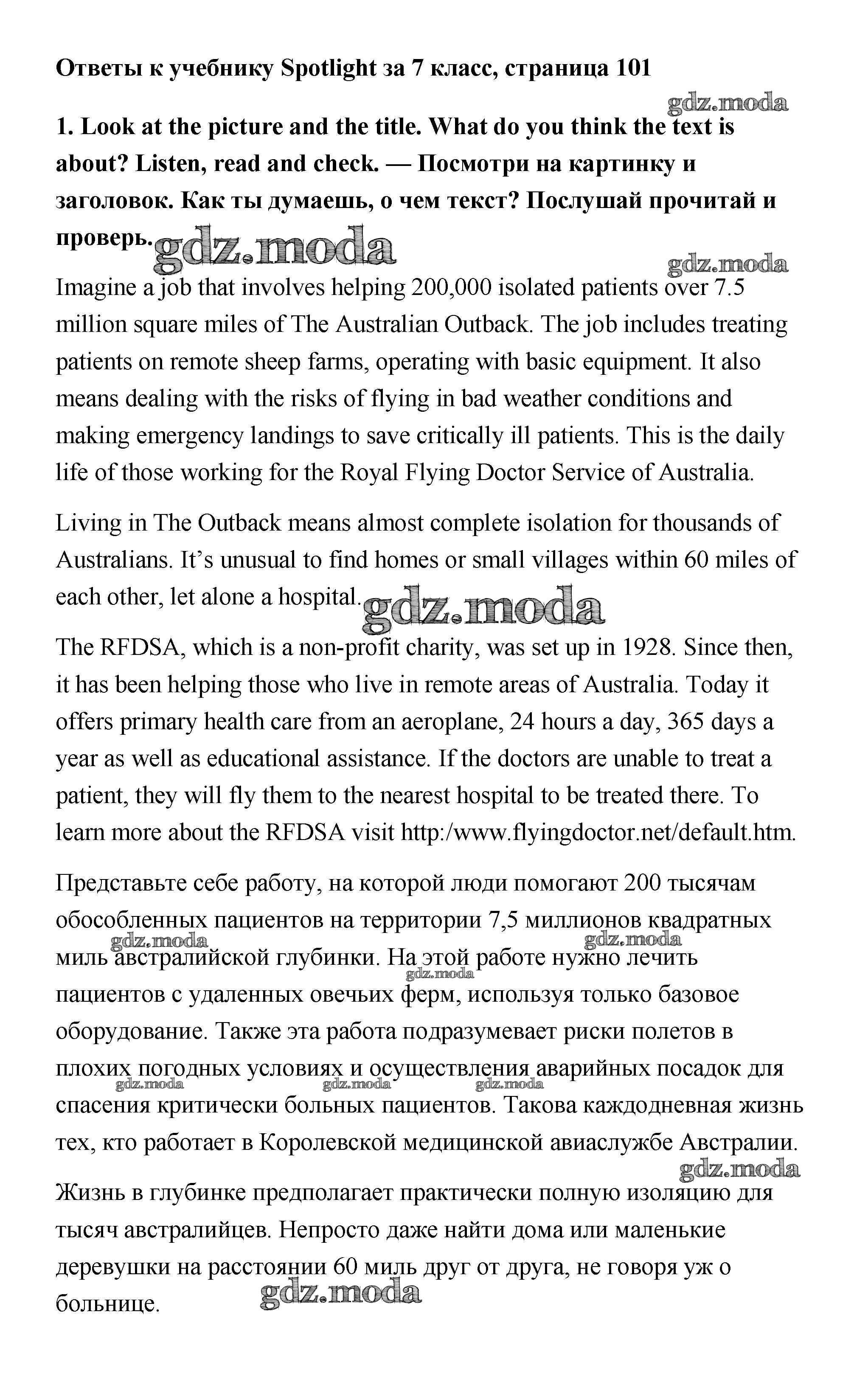 ОТВЕТ на задание № 1 Учебник по Английскому языку 7 класс Ваулина Spotlight