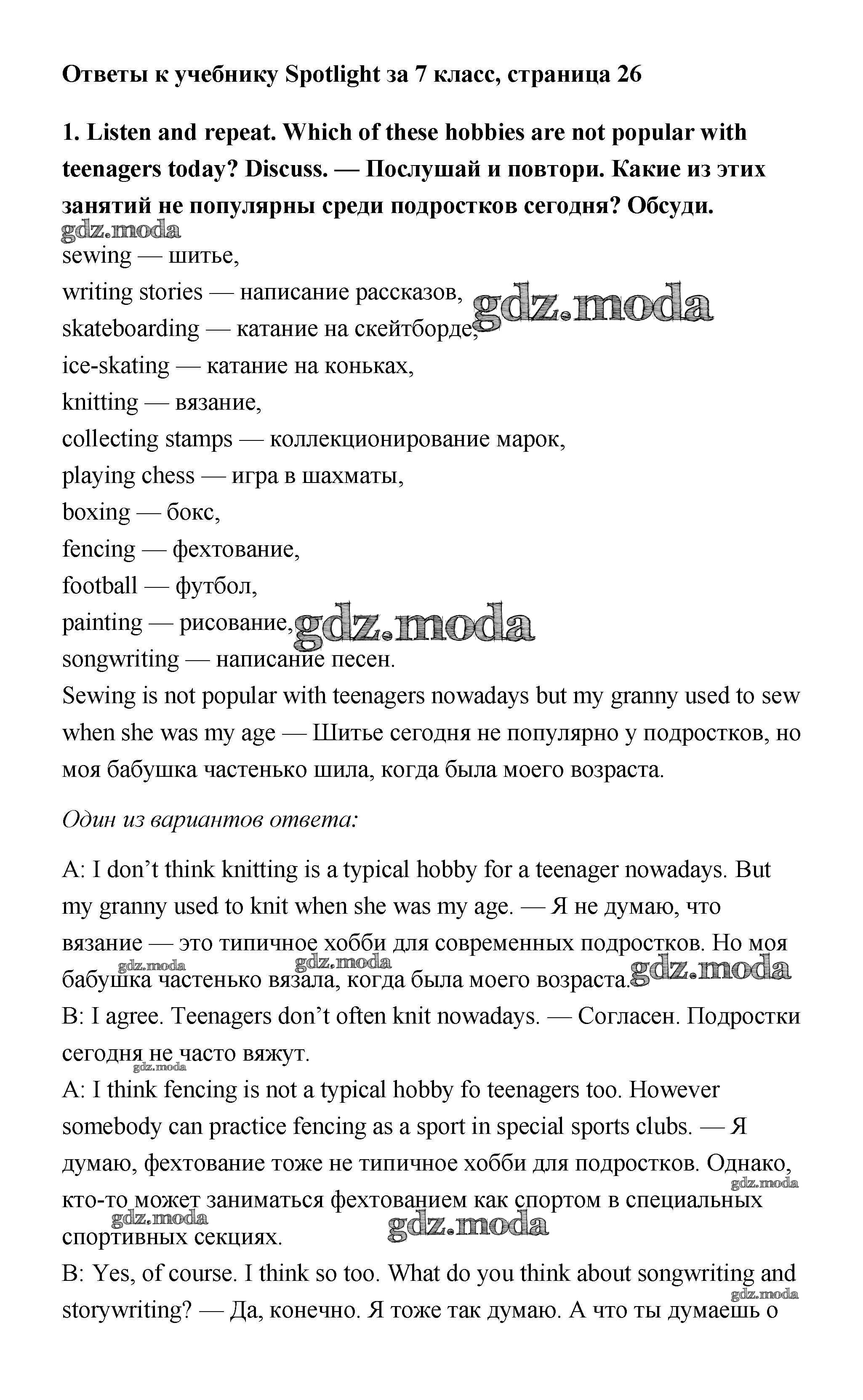 ОТВЕТ на задание № 1 Учебник по Английскому языку 7 класс Ваулина Spotlight
