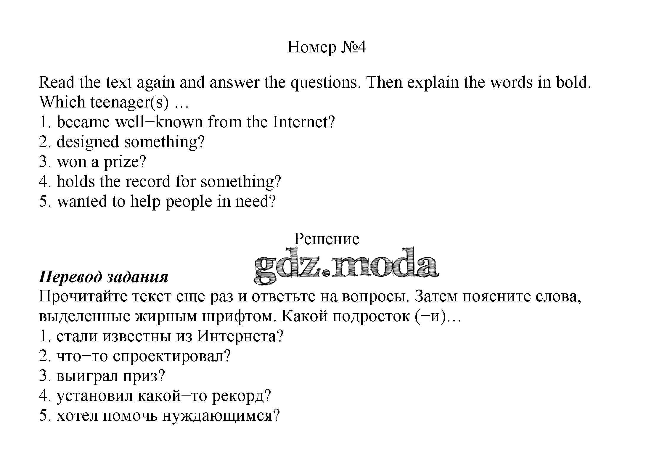 ОТВЕТ на задание № 4 Учебник по Английскому языку 7 класс Ваулина Spotlight
