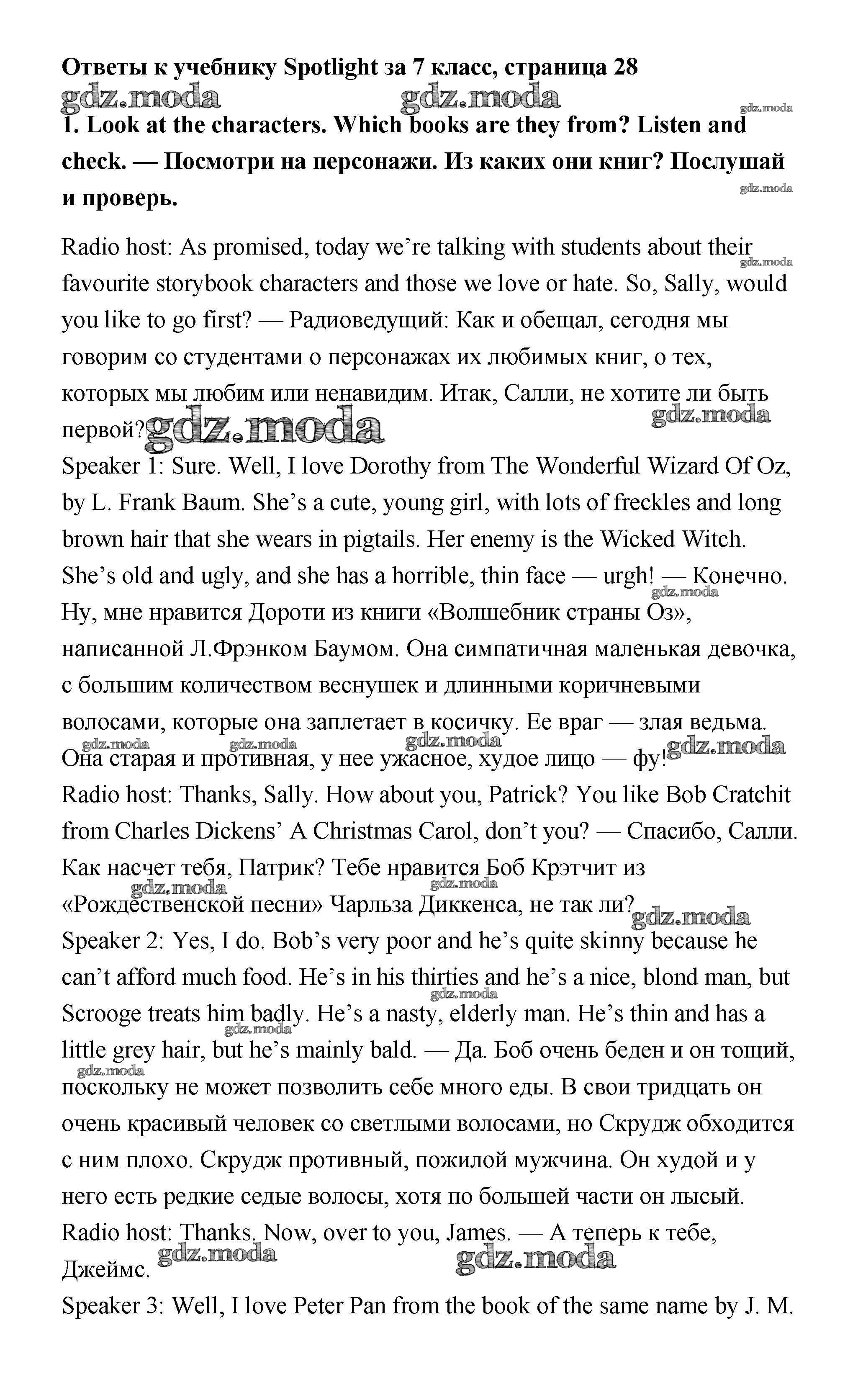 ОТВЕТ на задание № 1 Учебник по Английскому языку 7 класс Ваулина Spotlight