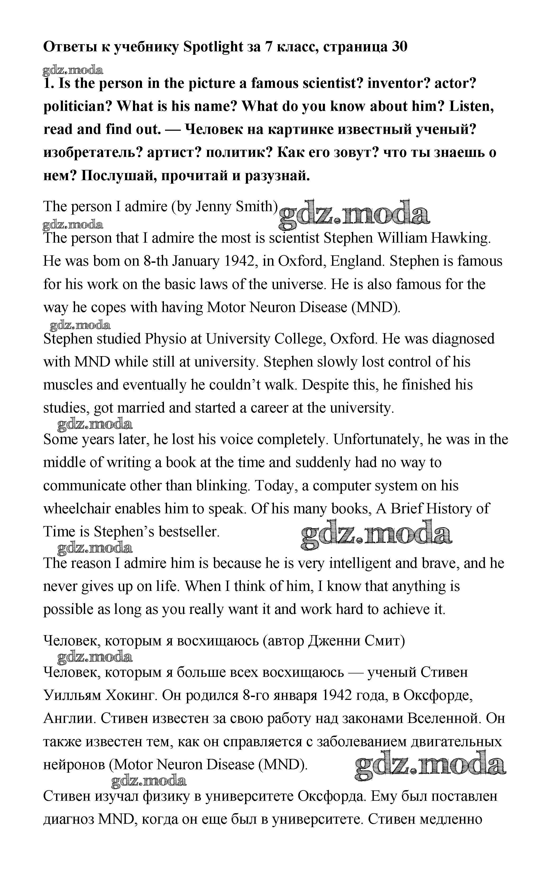 ОТВЕТ на задание № 1 Учебник по Английскому языку 7 класс Ваулина Spotlight