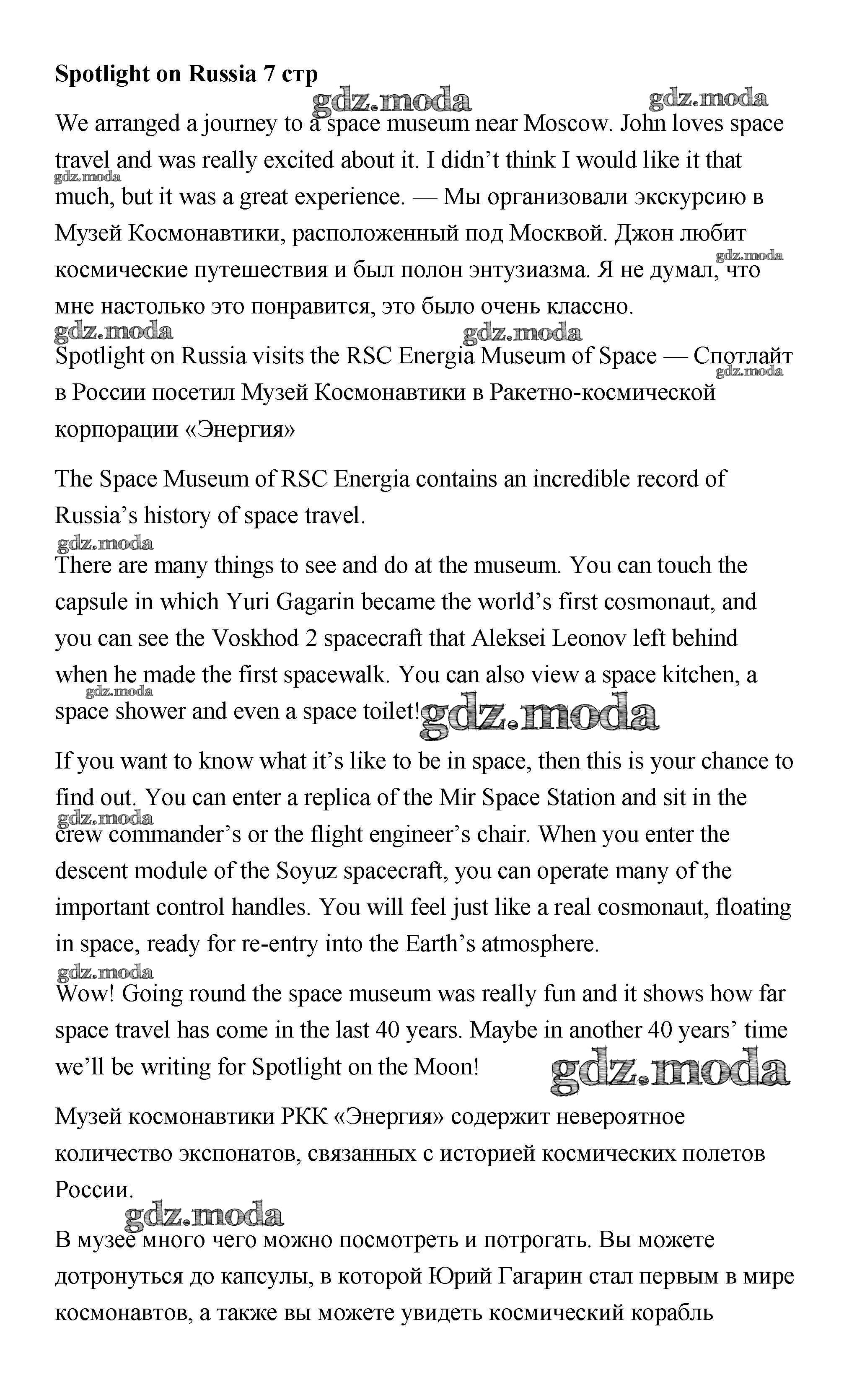 ОТВЕТ на задание № 7 Учебник по Английскому языку 7 класс Ваулина Spotlight