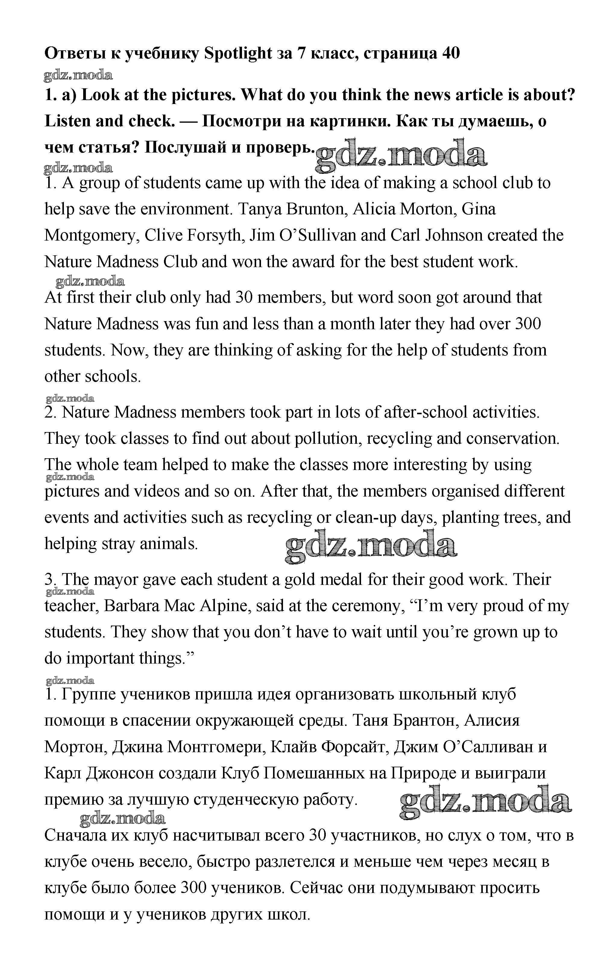 ОТВЕТ на задание № 1 Учебник по Английскому языку 7 класс Ваулина Spotlight