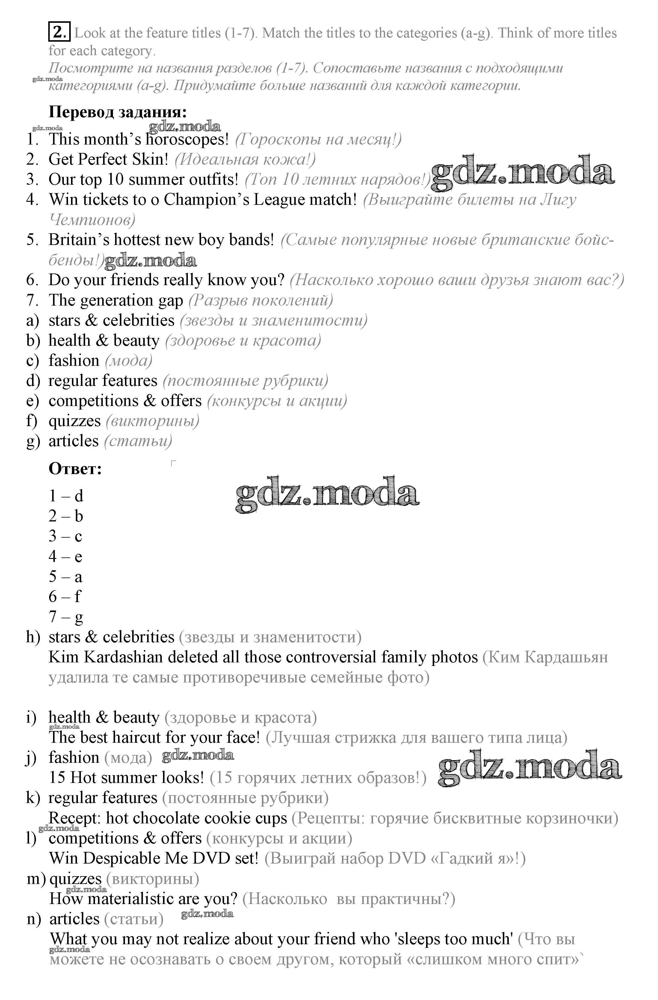 ОТВЕТ на задание № 2 Учебник по Английскому языку 7 класс Ваулина Spotlight