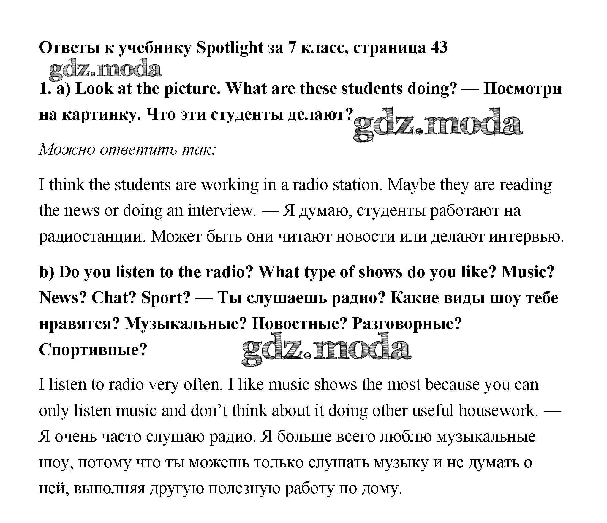 ОТВЕТ на задание № 1 Учебник по Английскому языку 7 класс Ваулина Spotlight