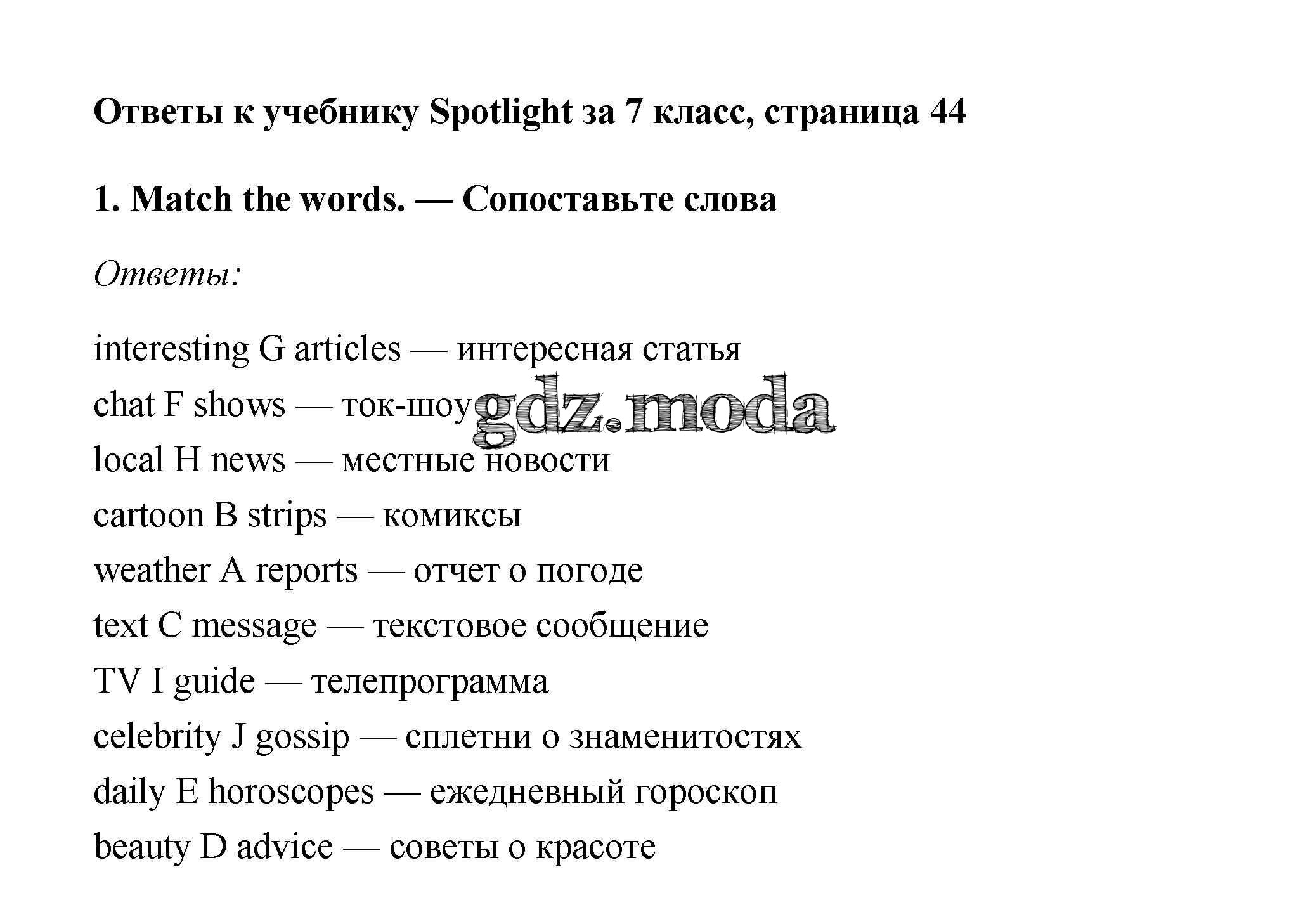 ОТВЕТ на задание № 1 Учебник по Английскому языку 7 класс Ваулина Spotlight