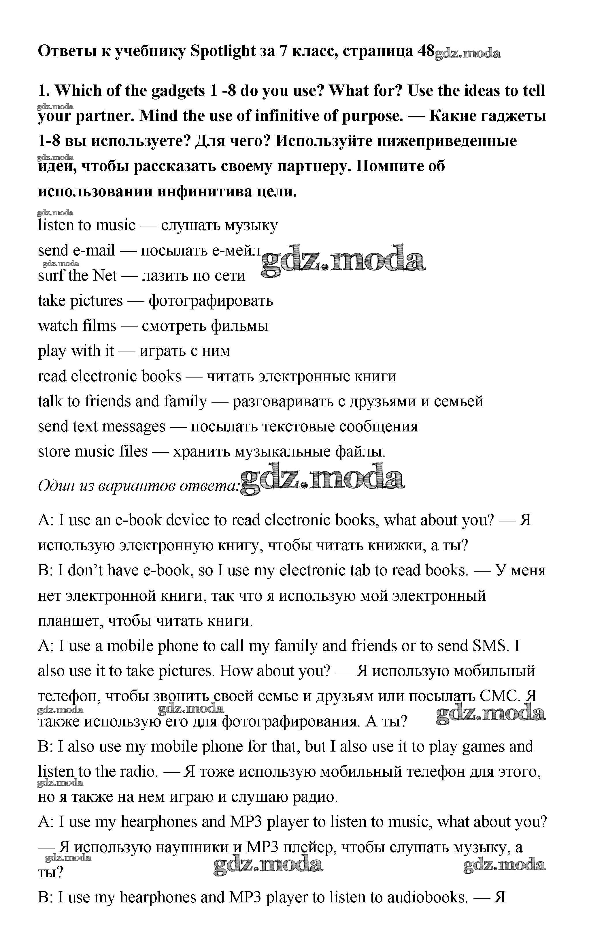 ОТВЕТ на задание № 1 Учебник по Английскому языку 7 класс Ваулина Spotlight