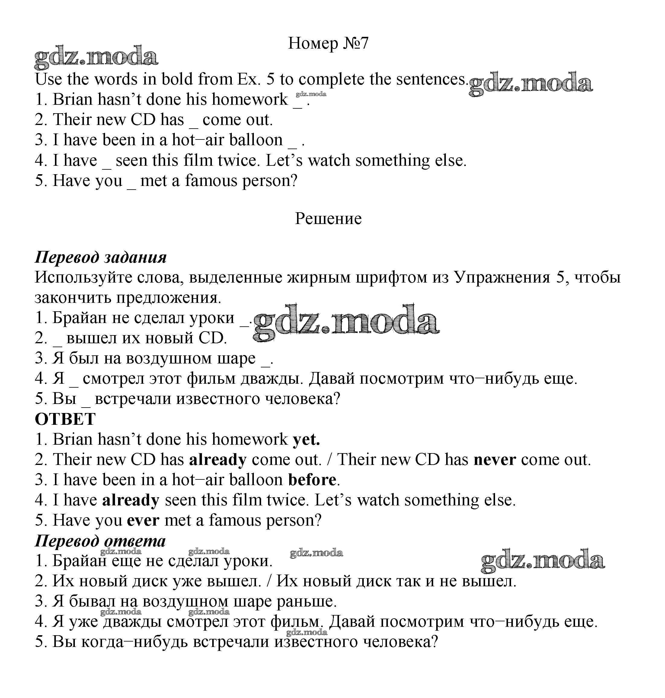 ОТВЕТ на задание № 7 Учебник по Английскому языку 7 класс Ваулина Spotlight