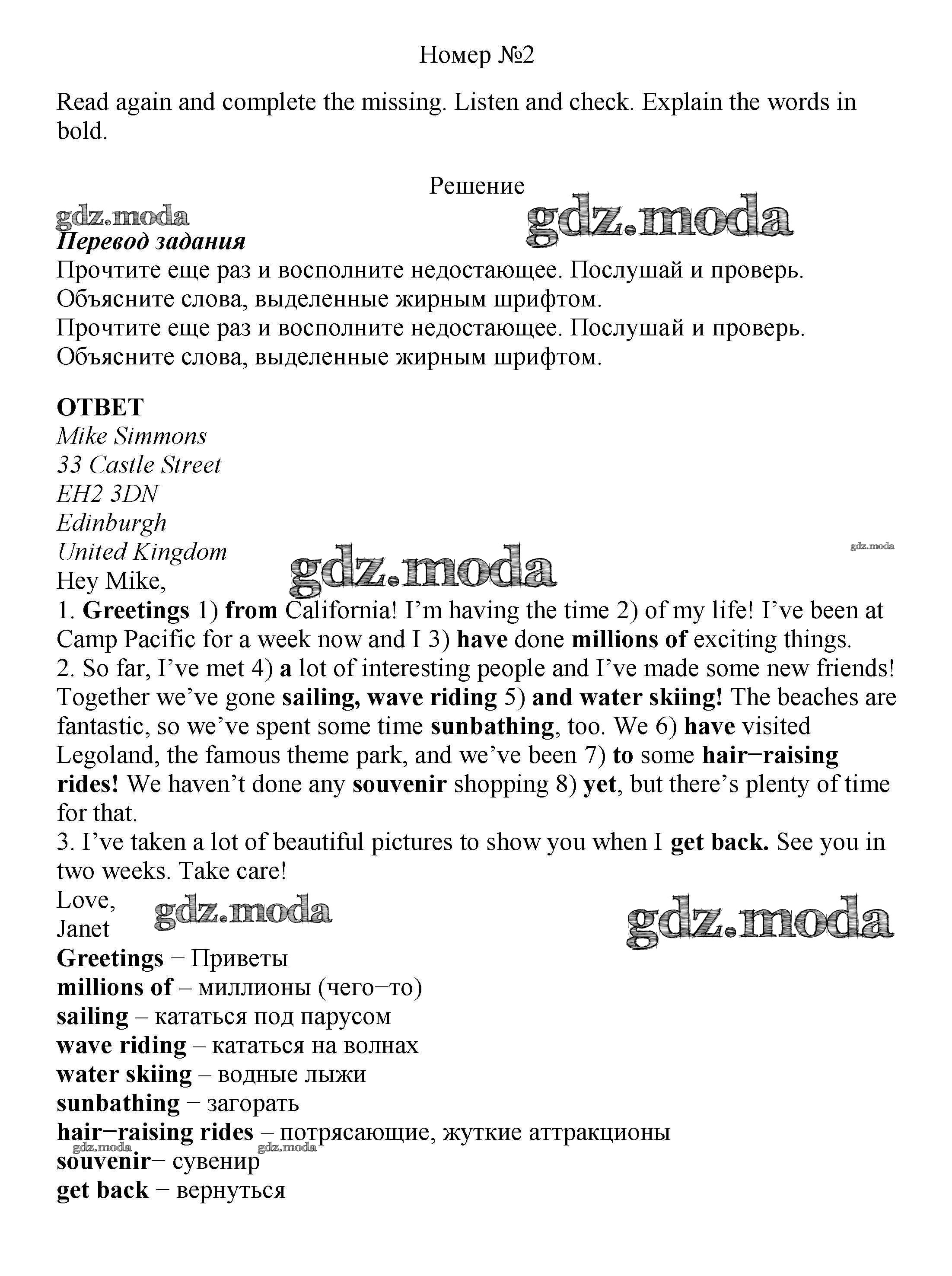 ОТВЕТ на задание № 2 Учебник по Английскому языку 7 класс Ваулина Spotlight