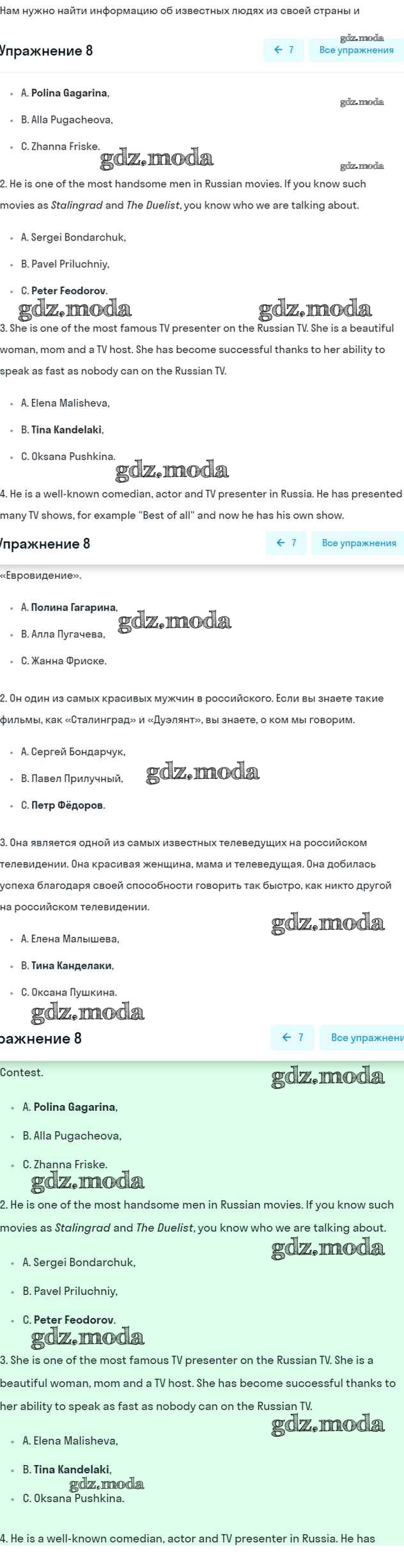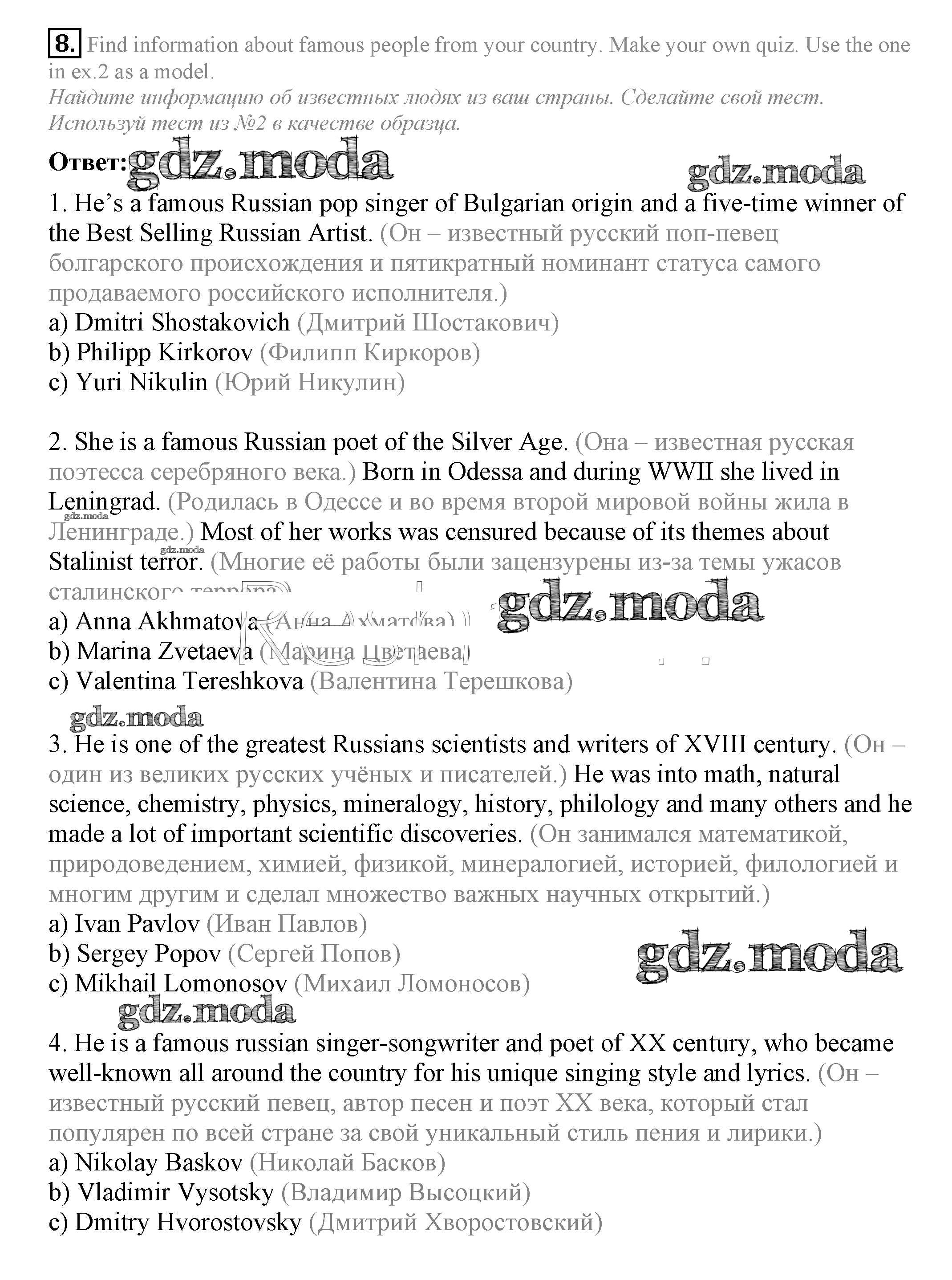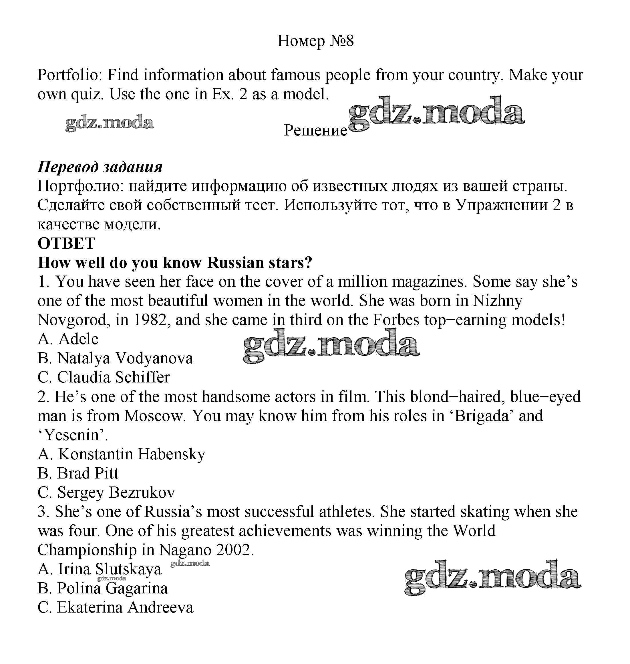 ОТВЕТ на задание № 8 Учебник по Английскому языку 7 класс Ваулина Spotlight