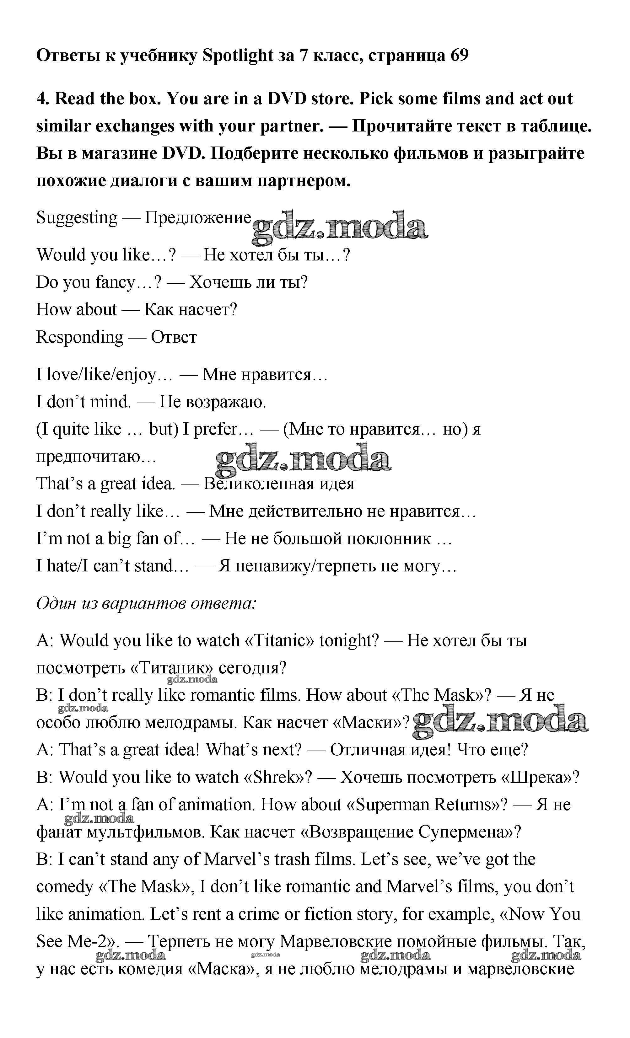 ОТВЕТ на задание № 4 Учебник по Английскому языку 7 класс Ваулина Spotlight