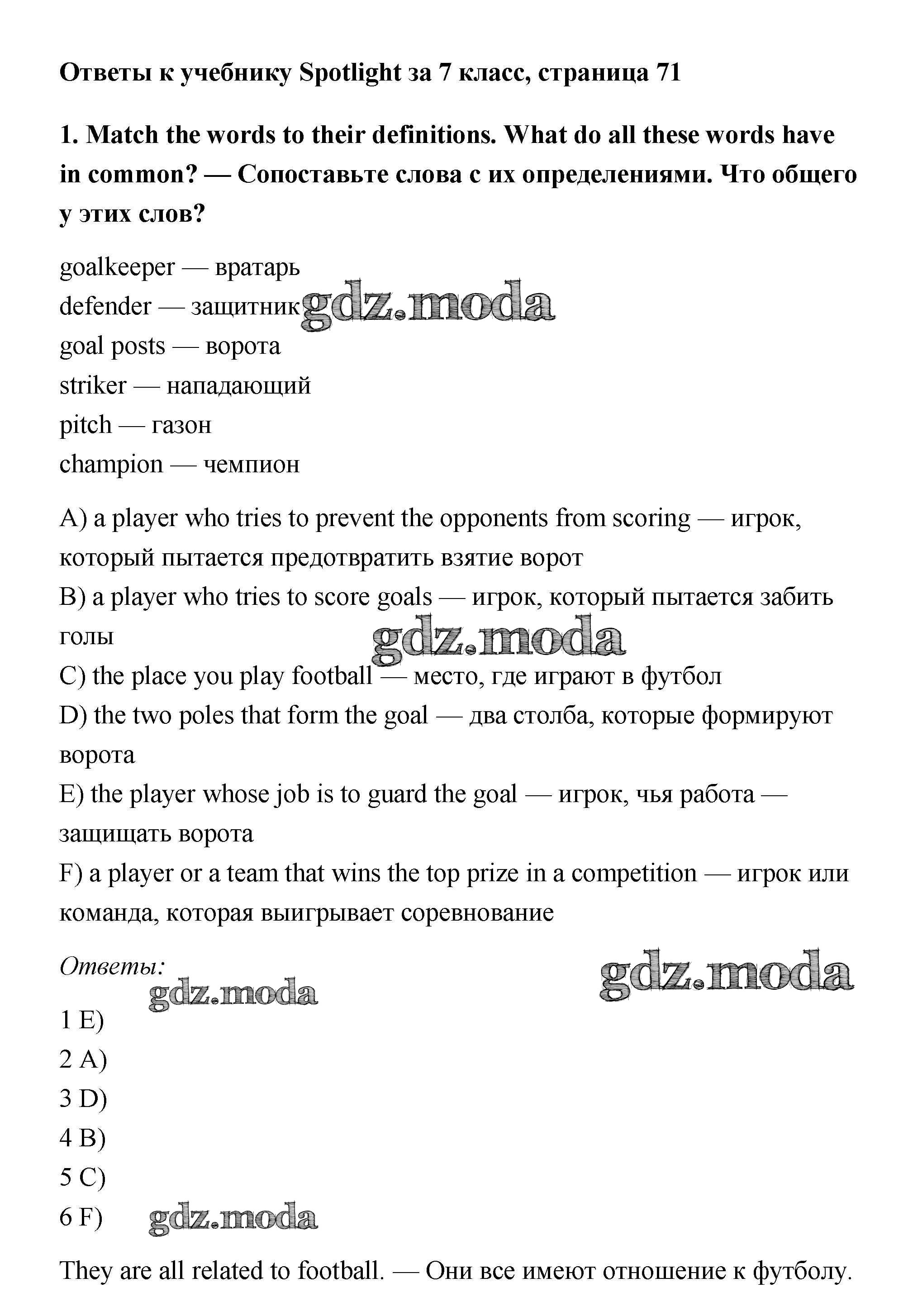 ОТВЕТ на задание № 1 Учебник по Английскому языку 7 класс Ваулина Spotlight