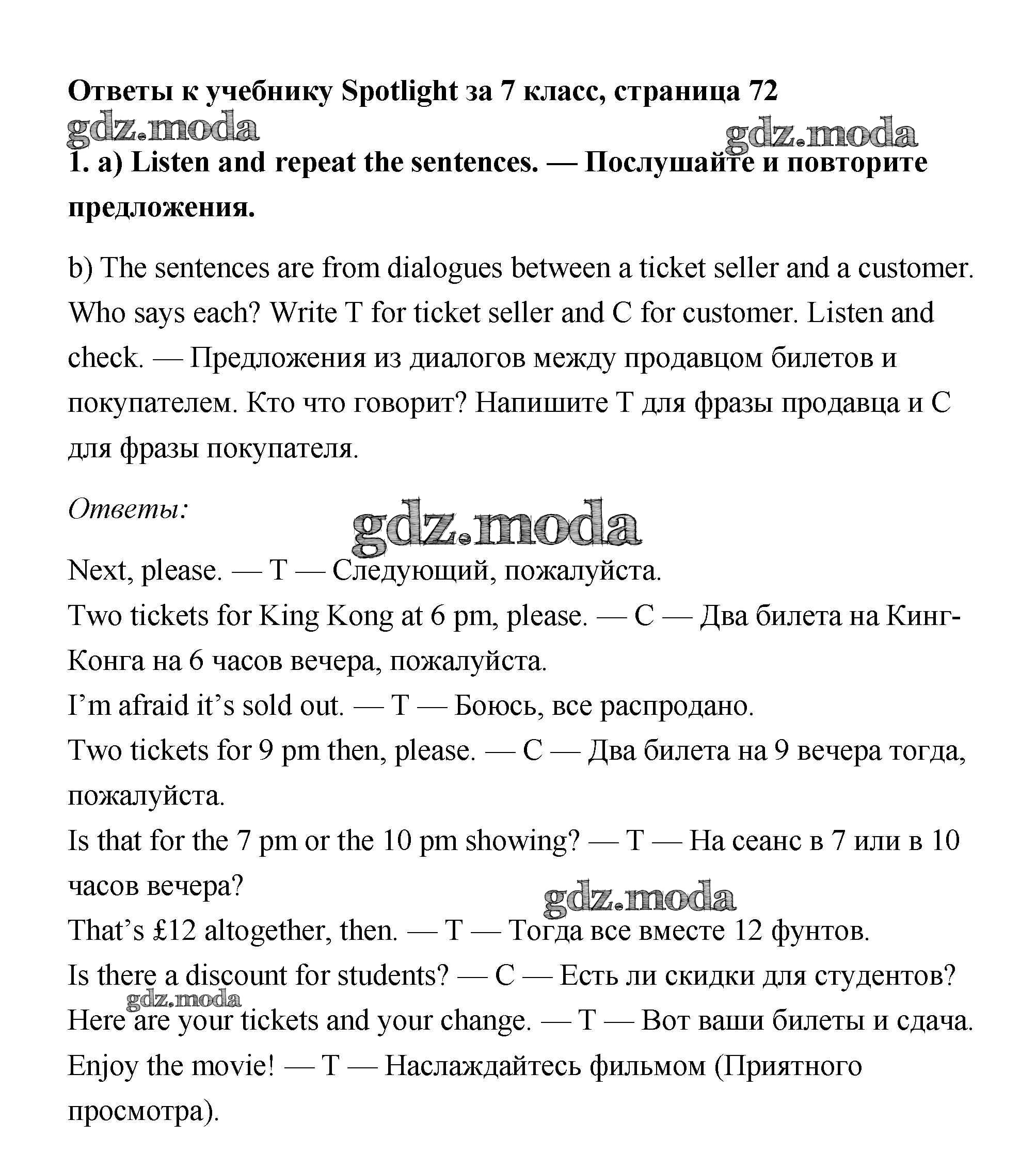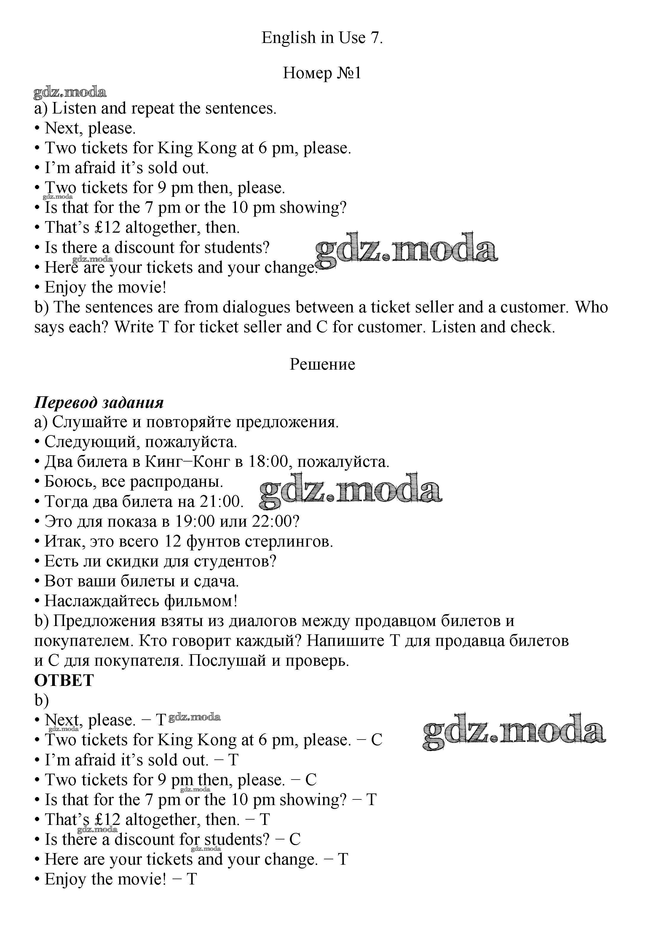 ОТВЕТ на задание № 1 Учебник по Английскому языку 7 класс Ваулина Spotlight