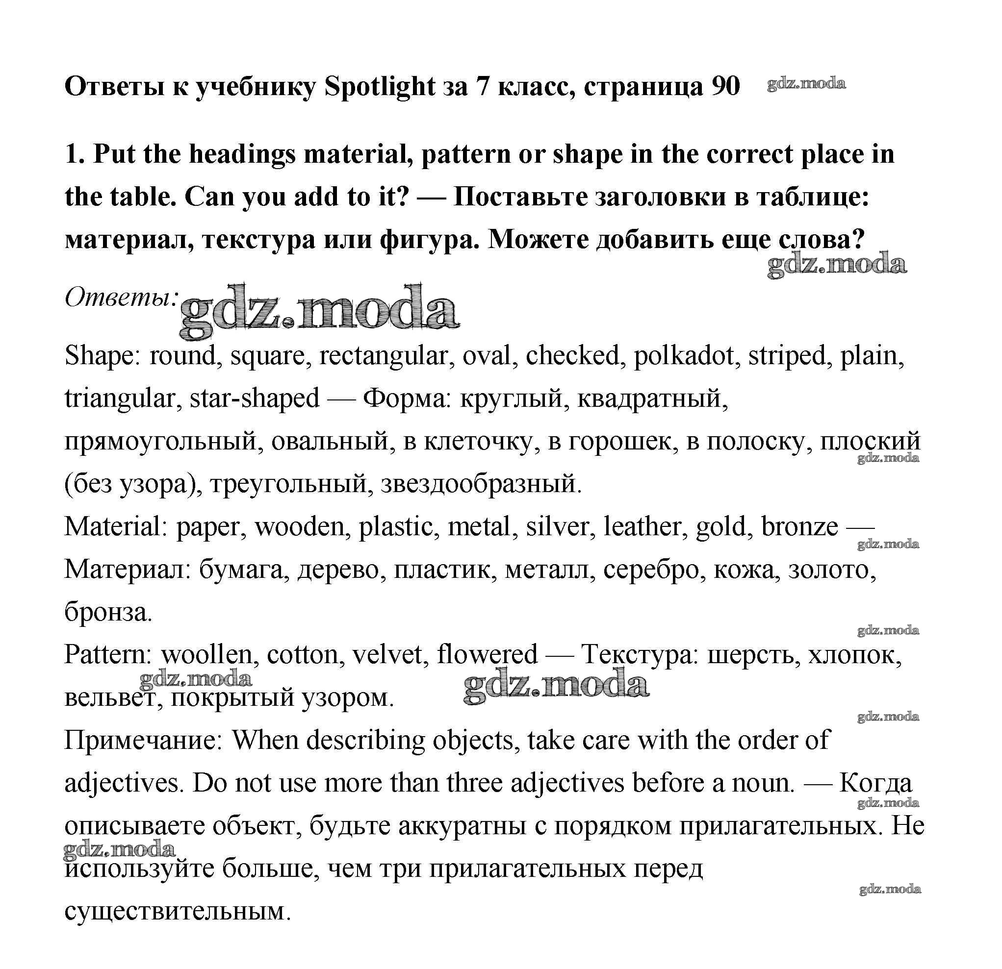 ОТВЕТ на задание № 1 Учебник по Английскому языку 7 класс Ваулина Spotlight