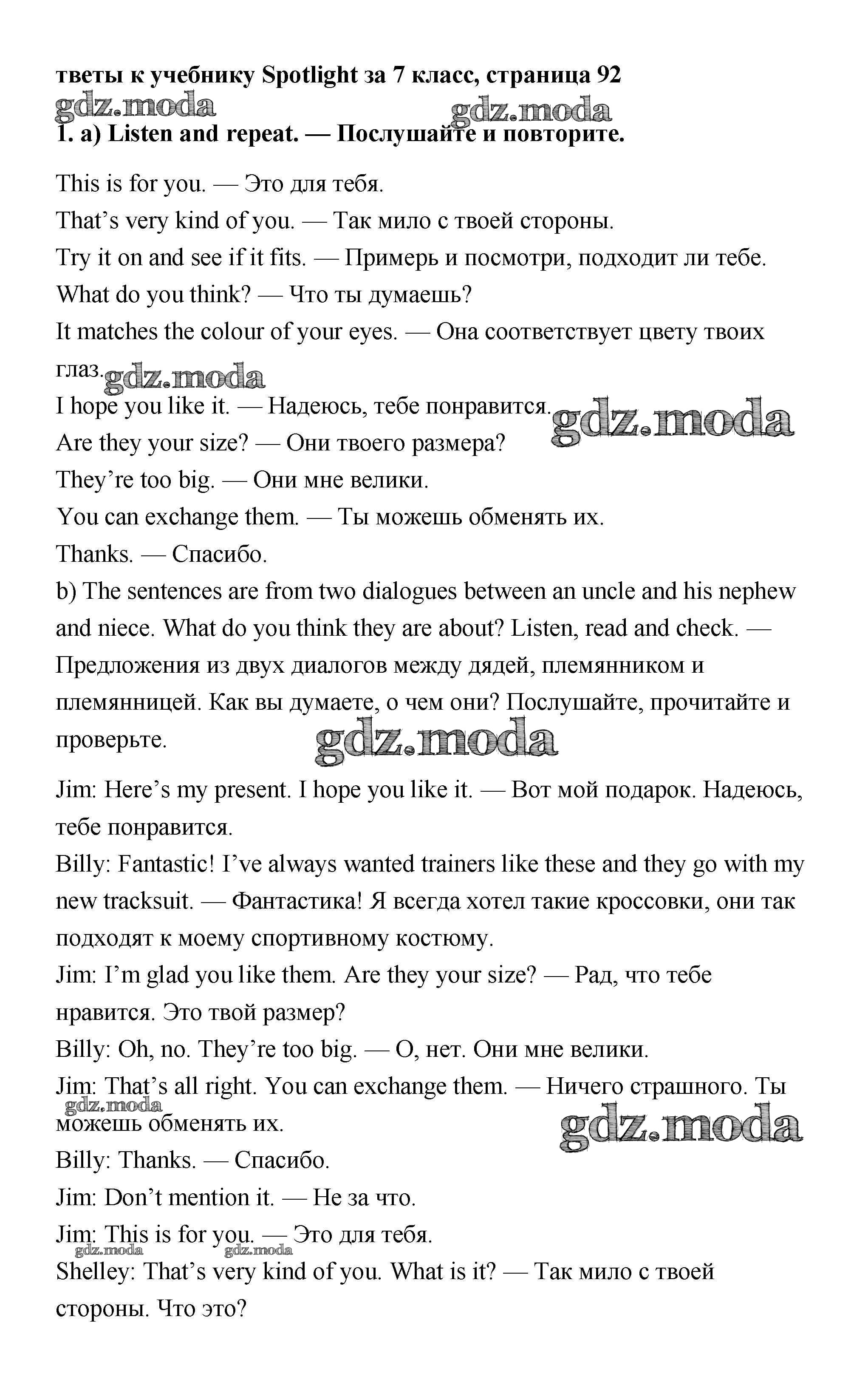 ОТВЕТ на задание № 1 Учебник по Английскому языку 7 класс Ваулина Spotlight