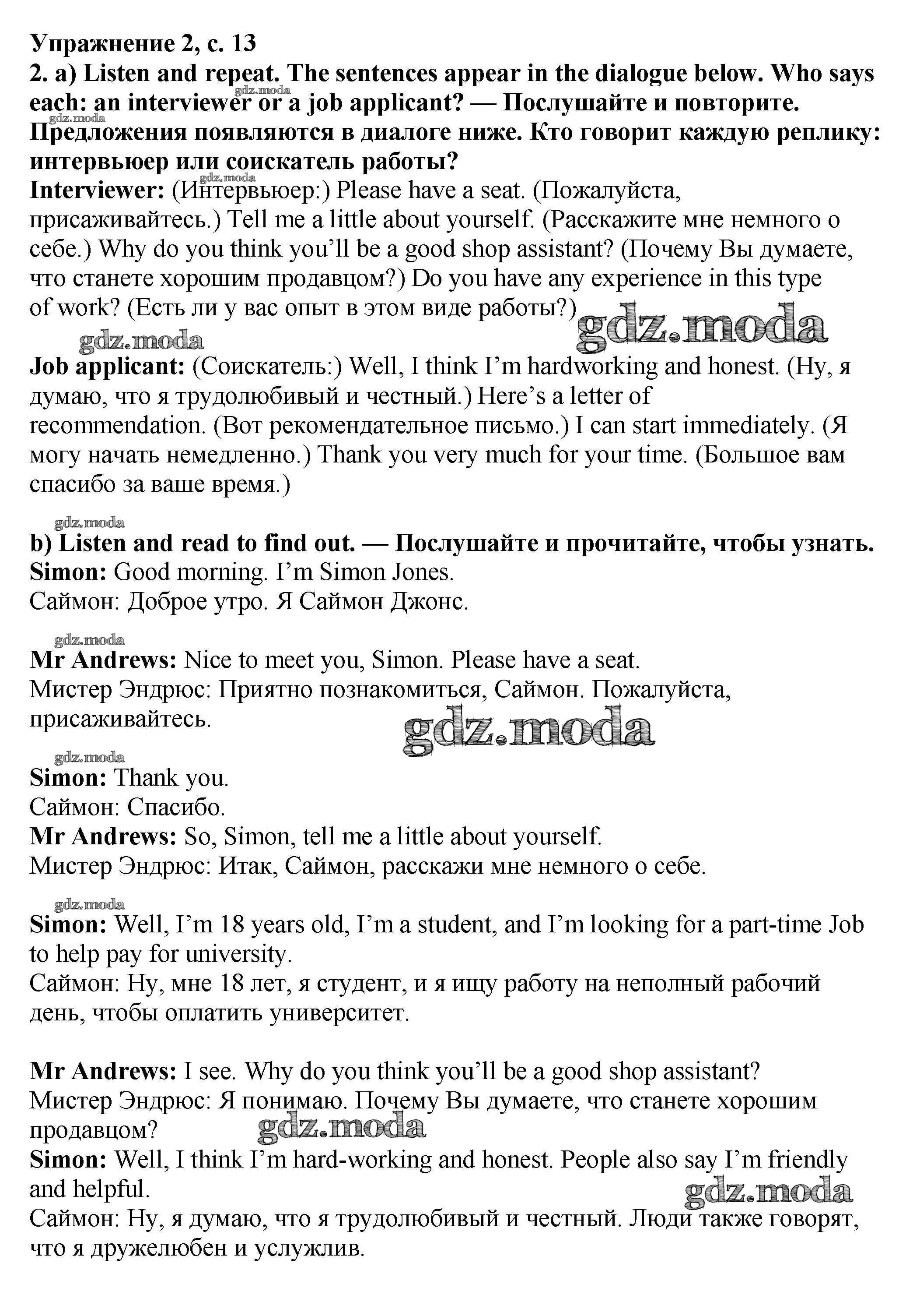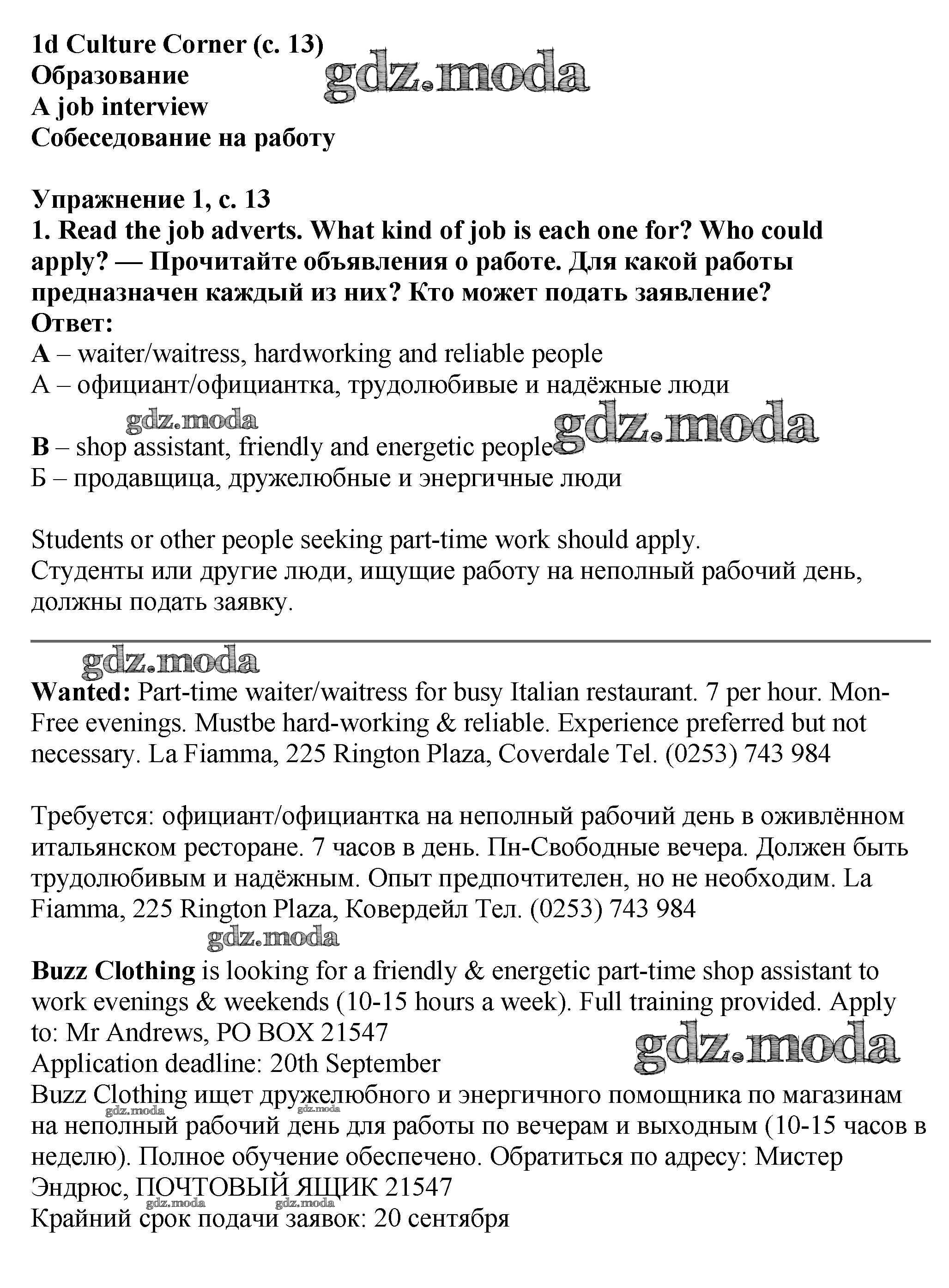 ОТВЕТ на задание № стр.13 Учебник по Английскому языку 7 класс Баранова Starlight Углубленный уровень