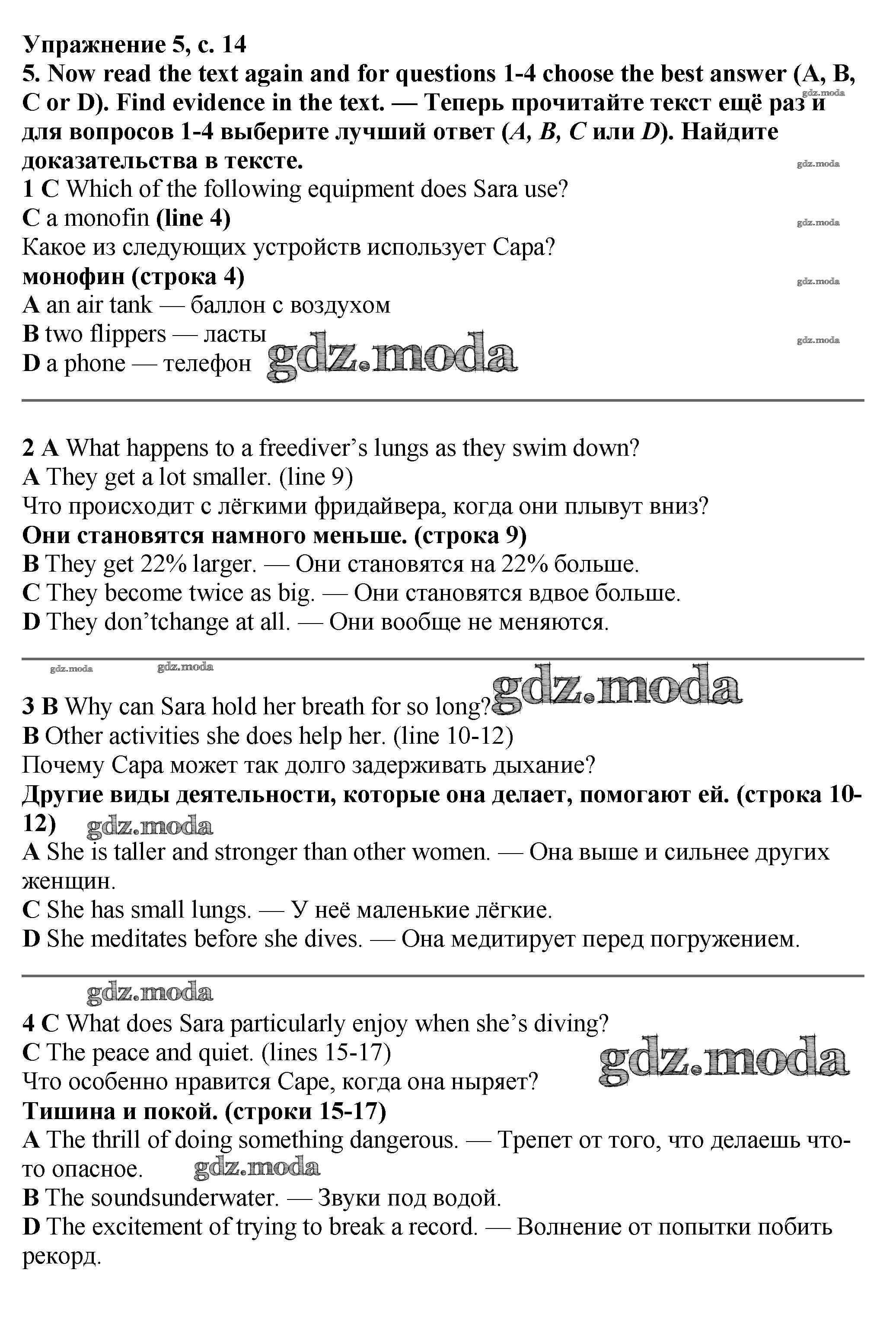 ОТВЕТ на задание № стр.14-15 Учебник по Английскому языку 7 класс Баранова Starlight Углубленный уровень