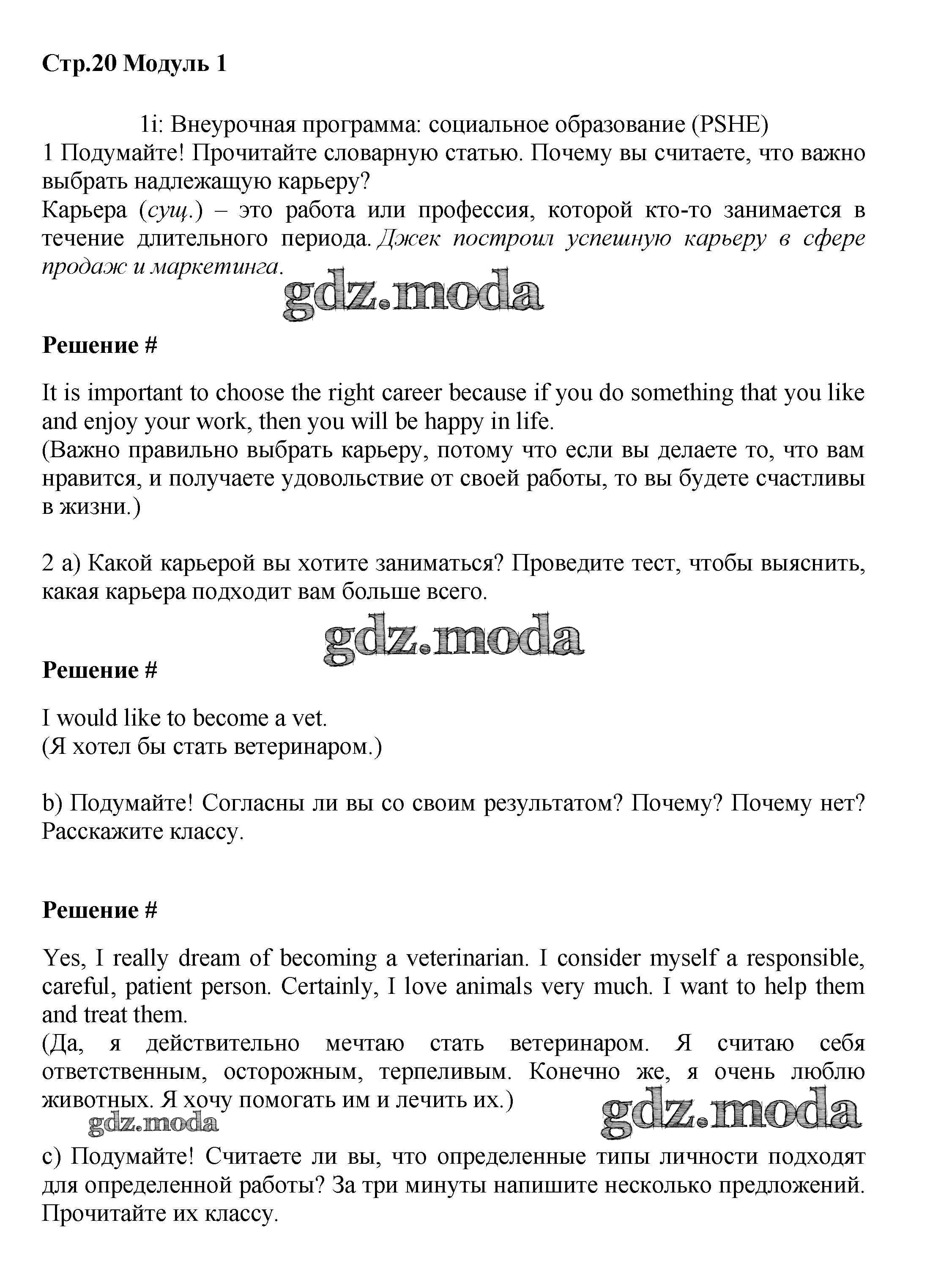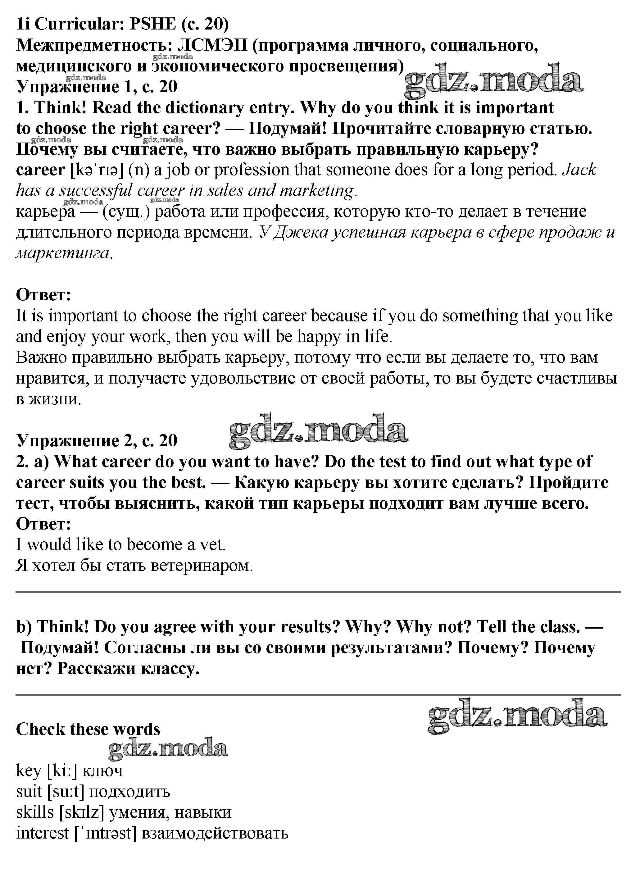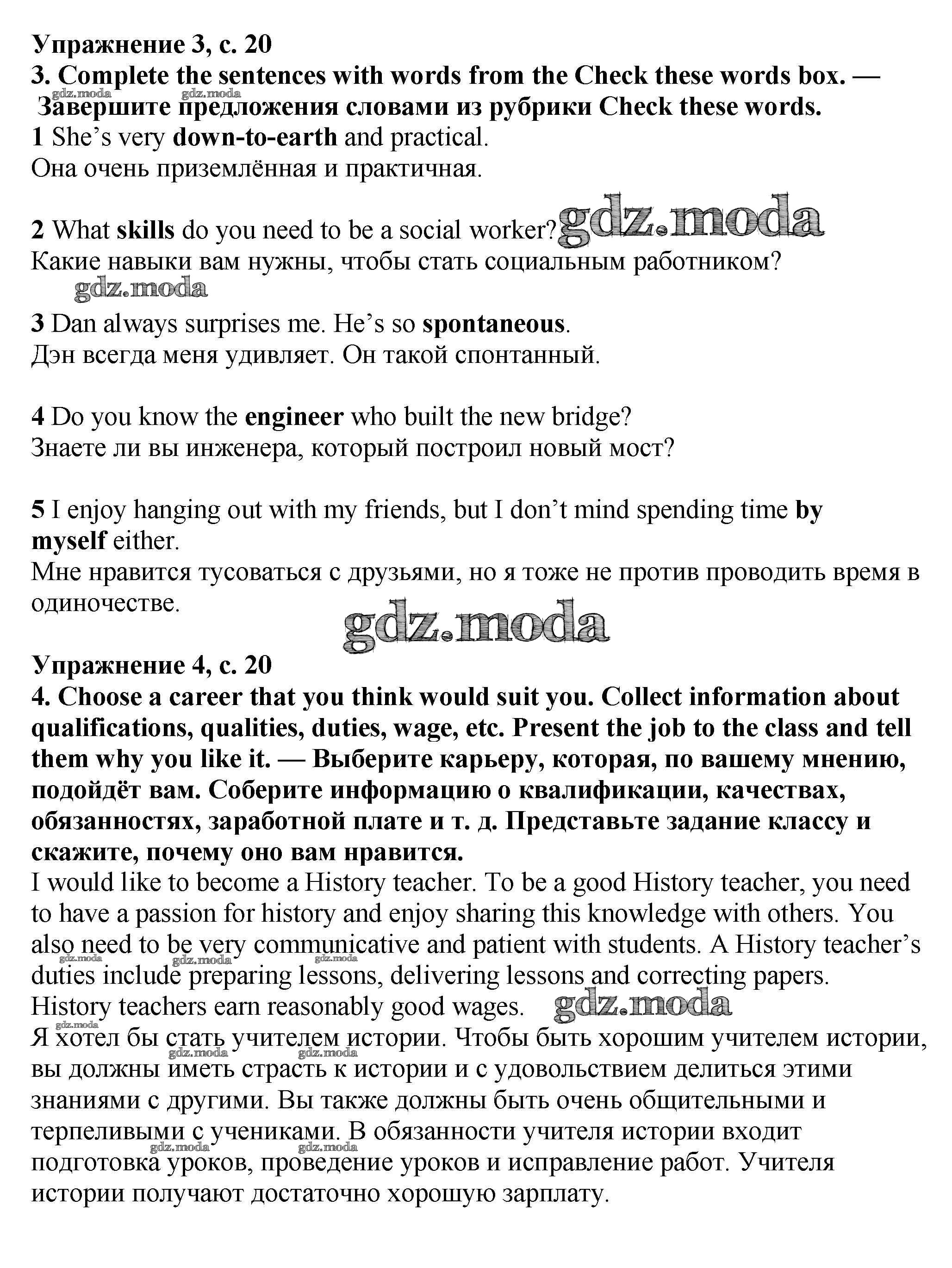 ОТВЕТ на задание № стр.20 Учебник по Английскому языку 7 класс Баранова Starlight Углубленный уровень
