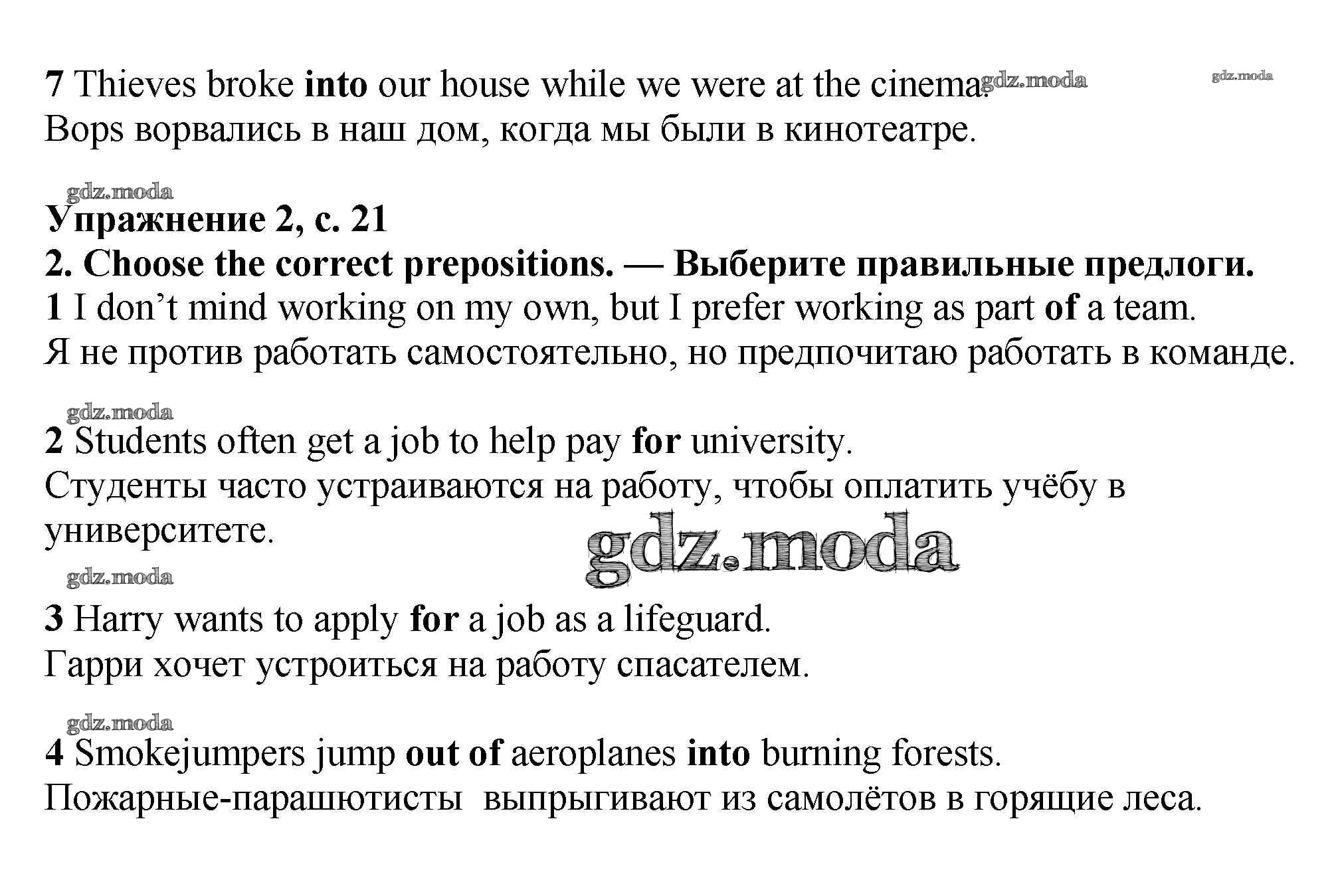 ОТВЕТ на задание № стр.21 Учебник по Английскому языку 7 класс Баранова Starlight Углубленный уровень