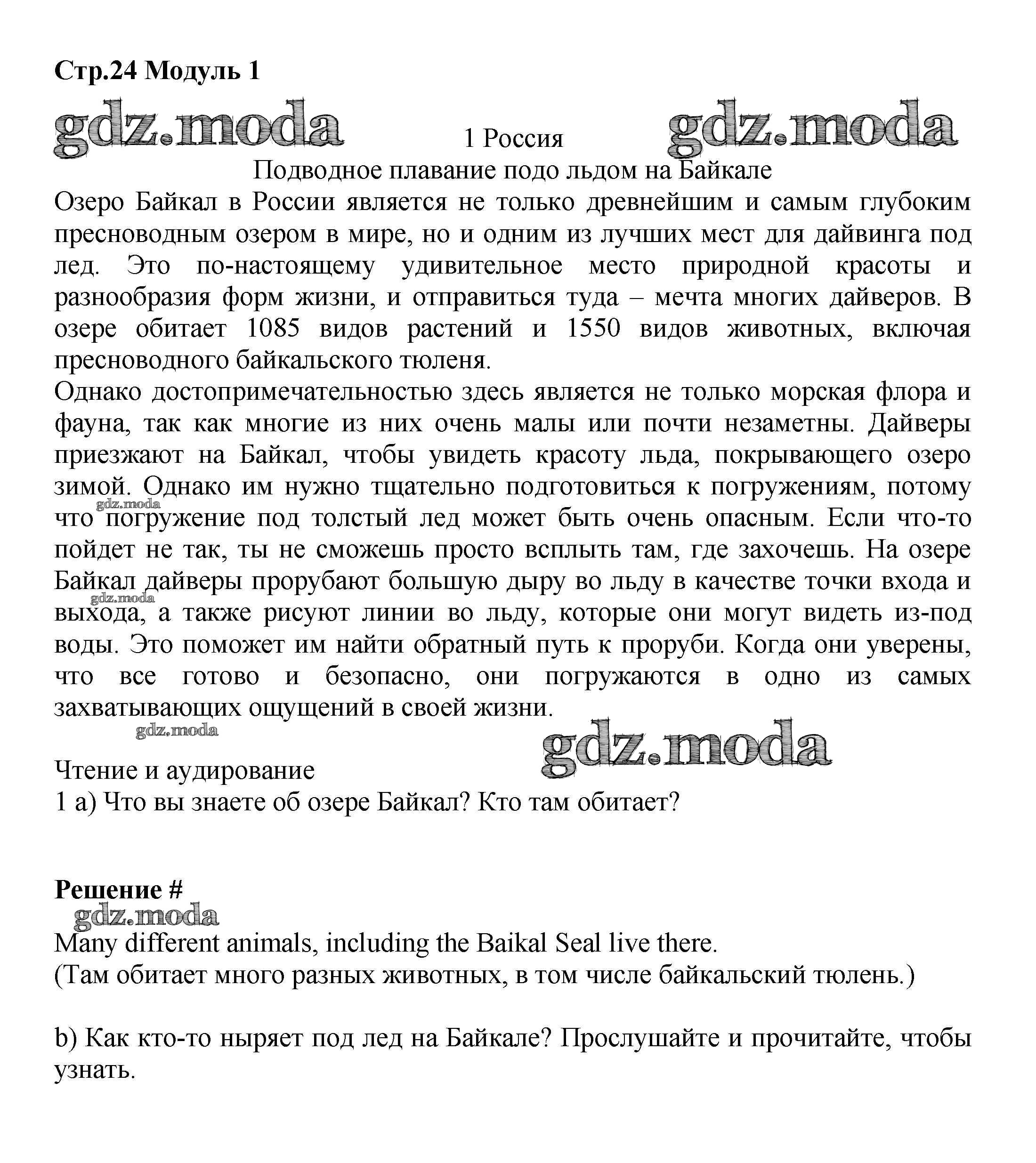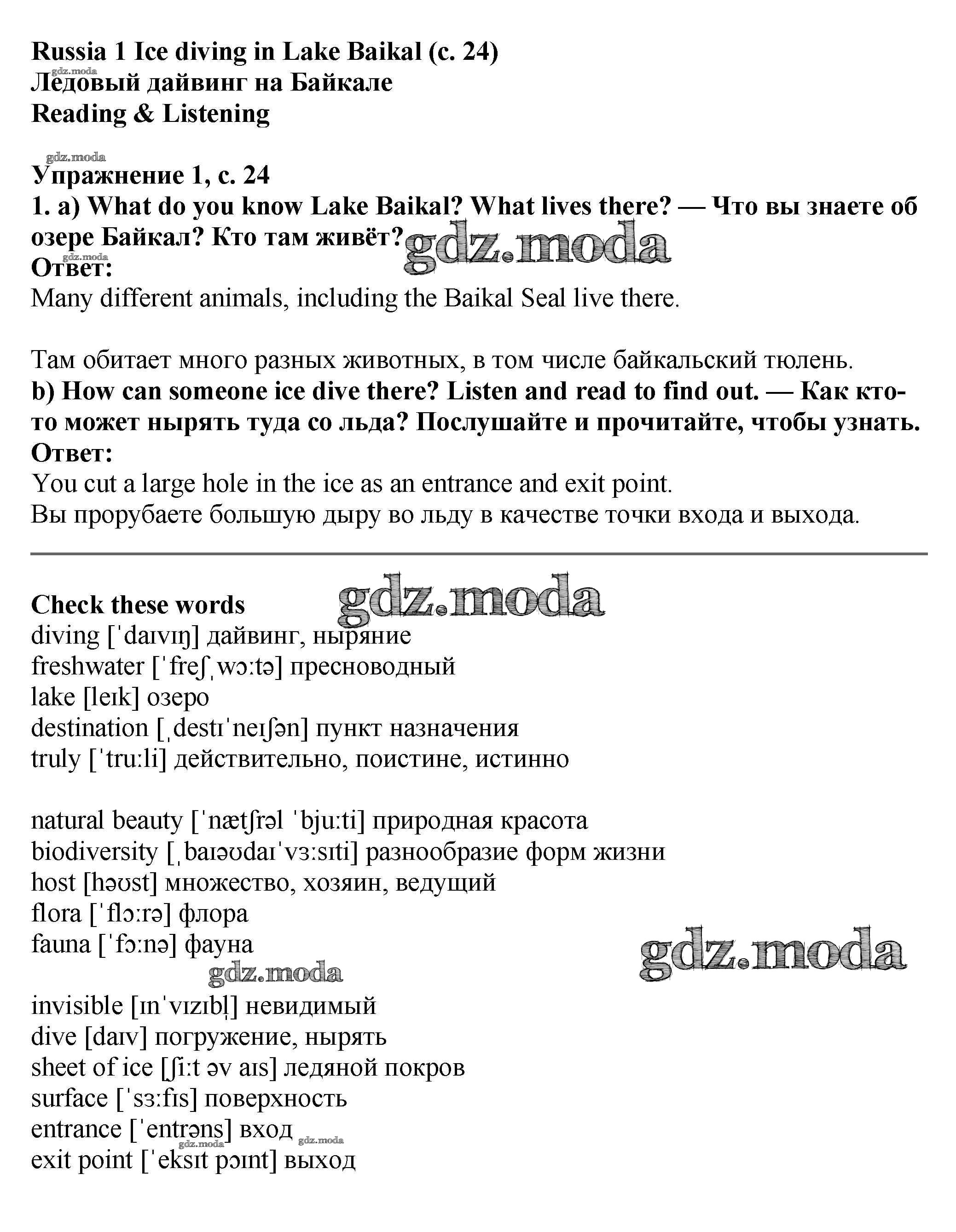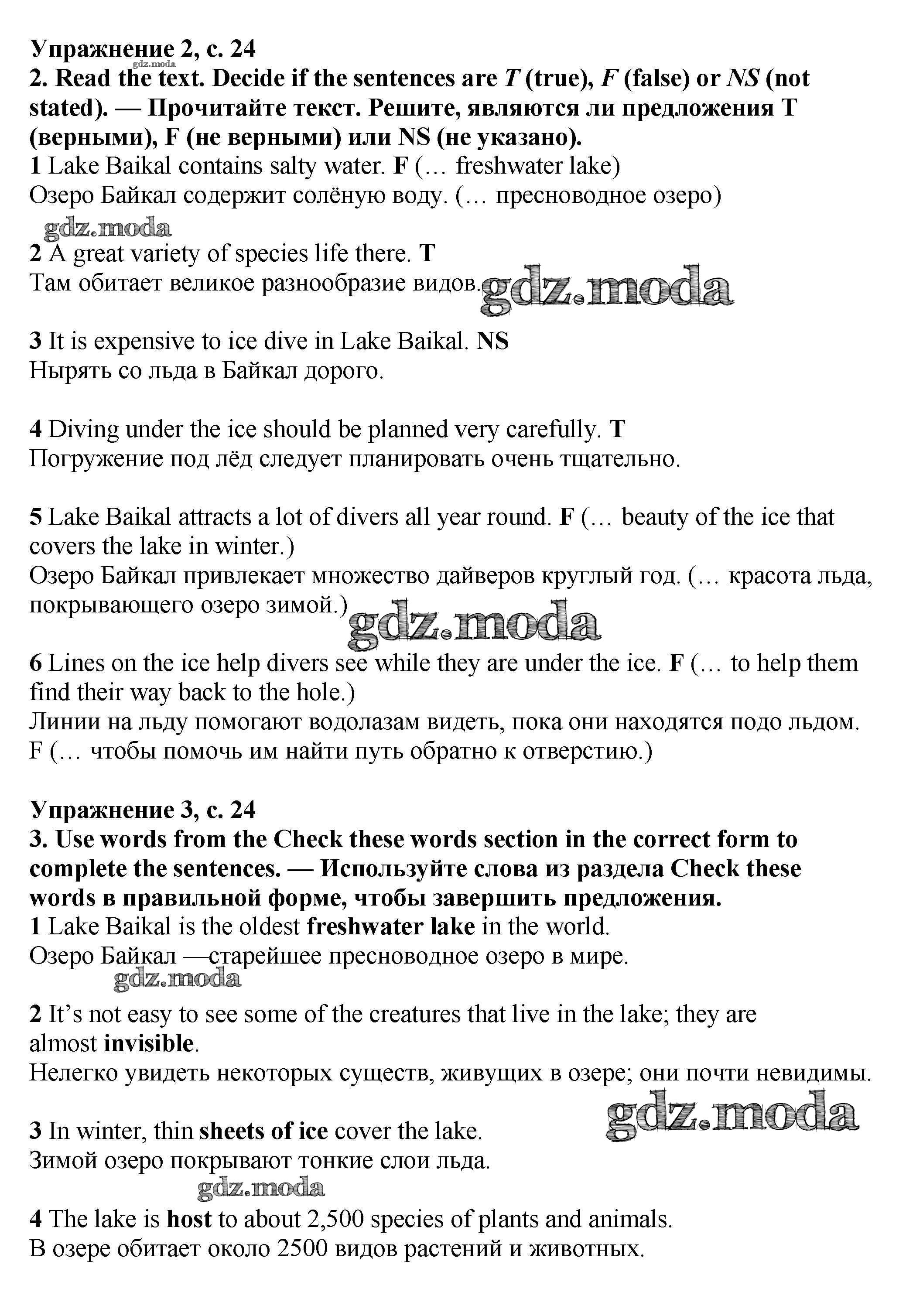ОТВЕТ на задание № стр.24 Учебник по Английскому языку 7 класс Баранова Starlight Углубленный уровень