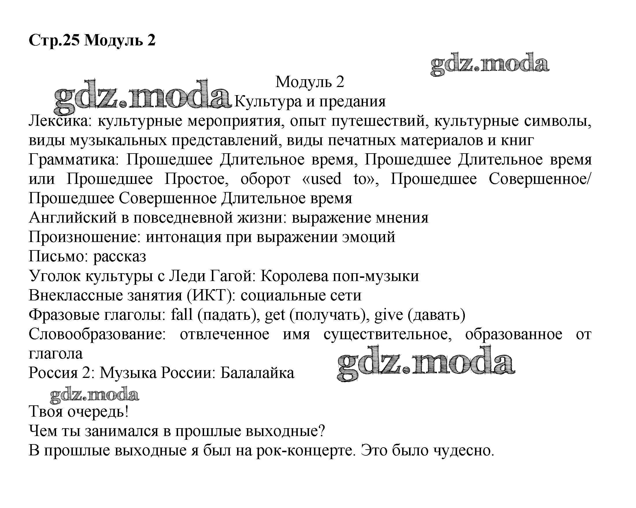 ОТВЕТ на задание № стр.25 Учебник по Английскому языку 7 класс Баранова Starlight Углубленный уровень
