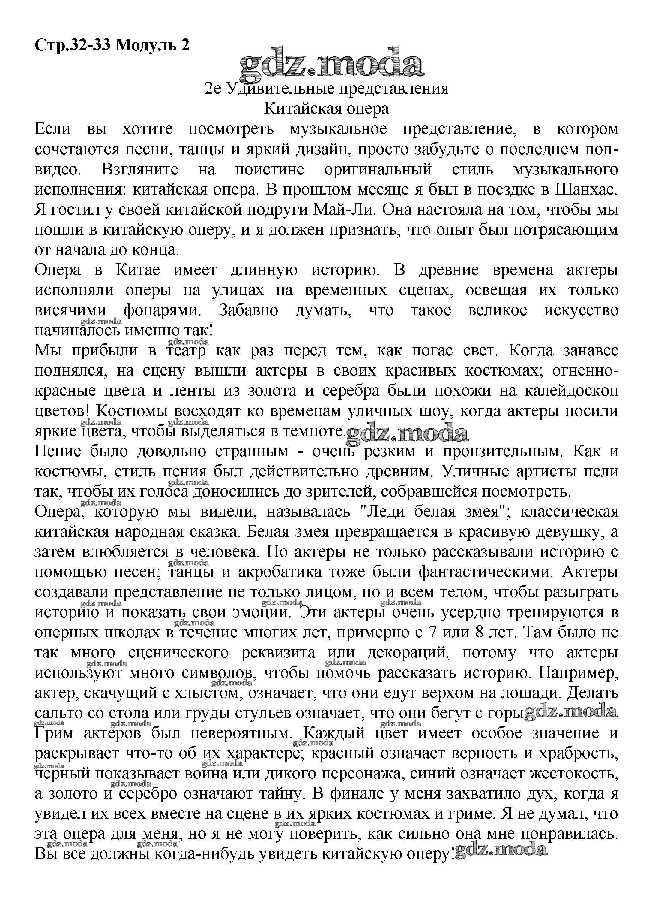 ОТВЕТ на задание № стр.32-33 Учебник по Английскому языку 7 класс Баранова Starlight Углубленный уровень