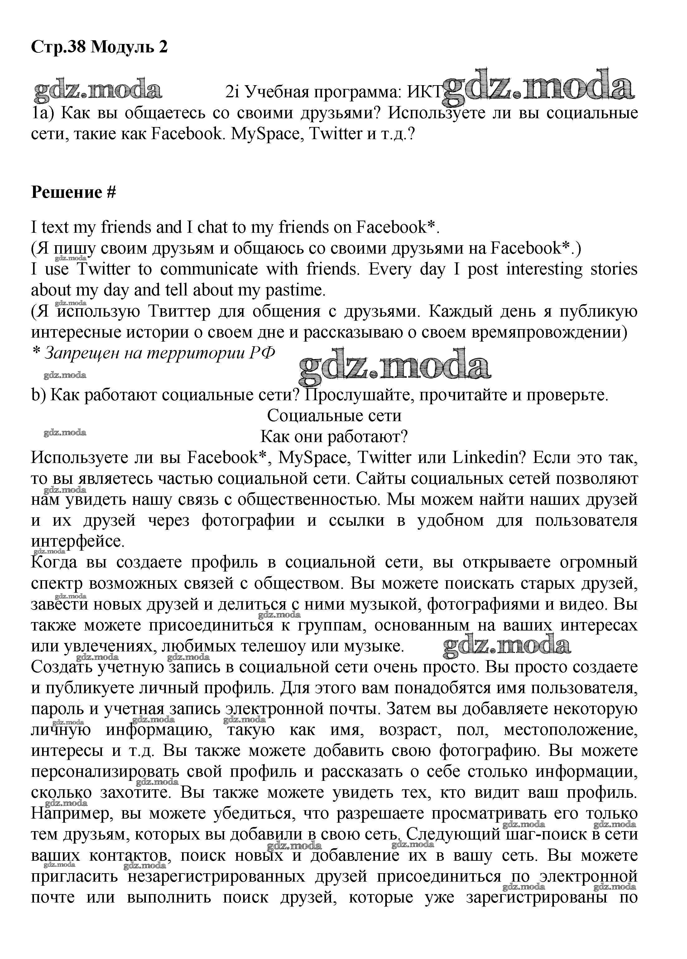 ОТВЕТ на задание № стр.38 Учебник по Английскому языку 7 класс Баранова Starlight Углубленный уровень