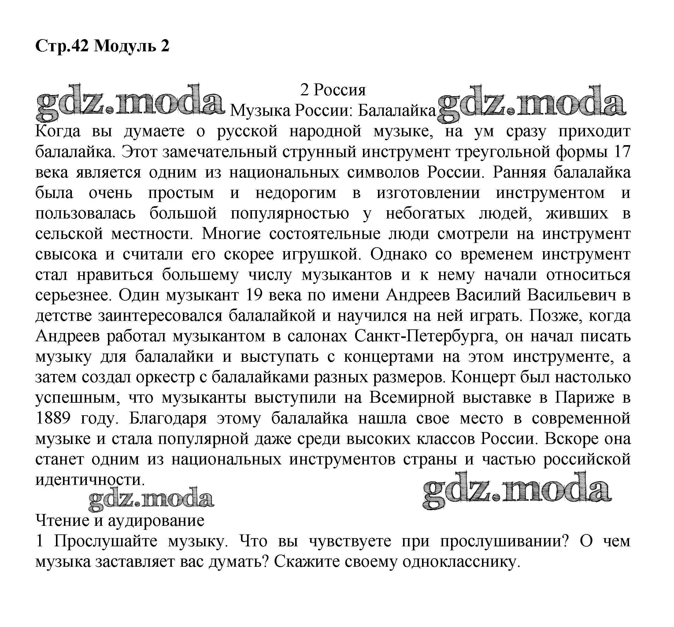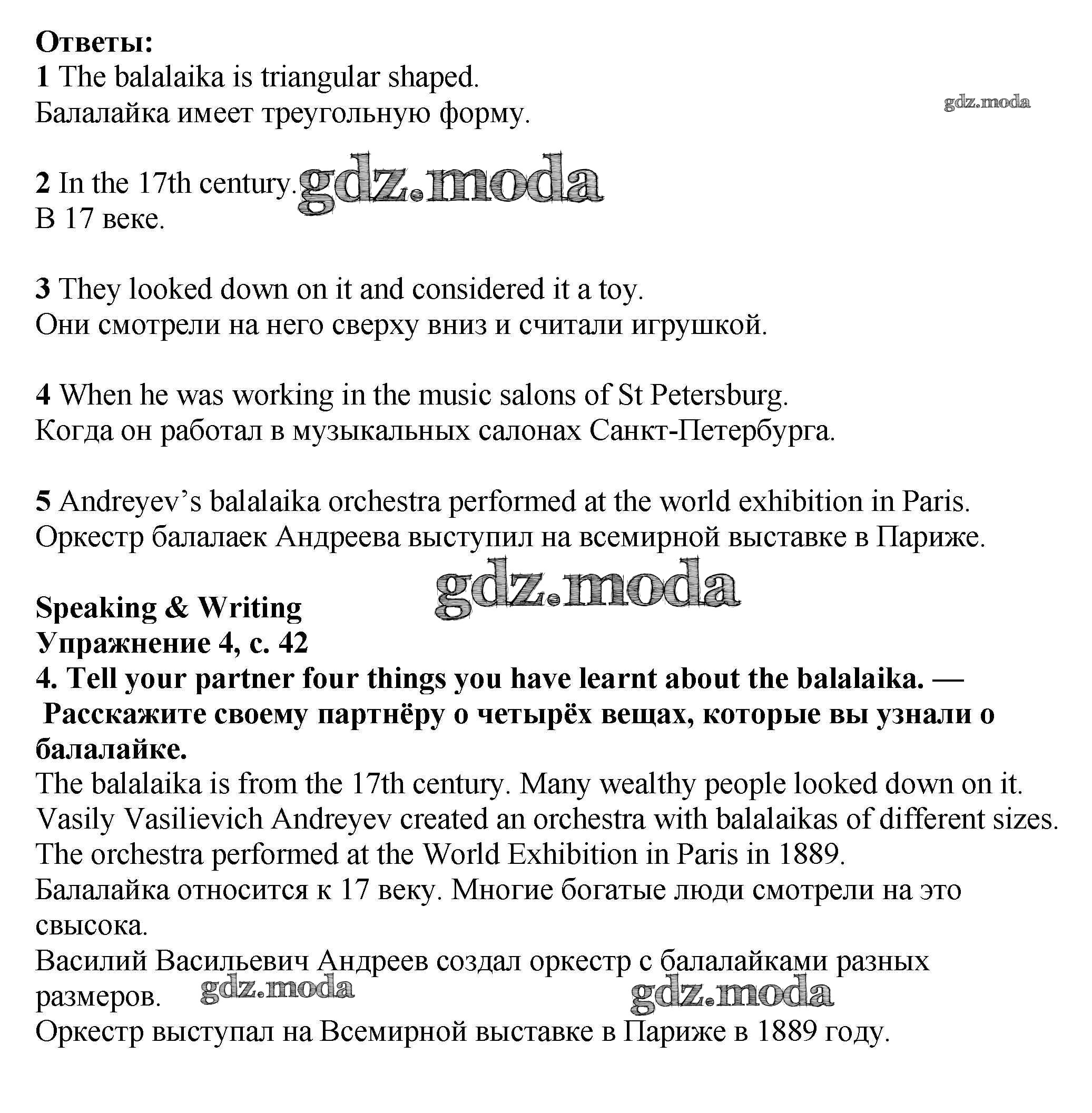 ОТВЕТ на задание № стр.42 Учебник по Английскому языку 7 класс Баранова Starlight Углубленный уровень