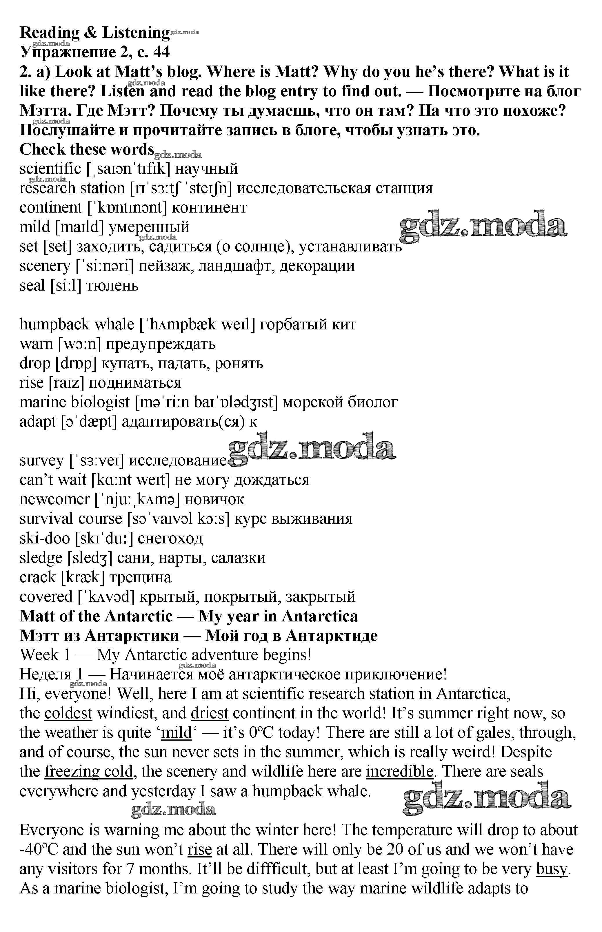 ОТВЕТ на задание № стр.44-45 Учебник по Английскому языку 7 класс Баранова Starlight Углубленный уровень