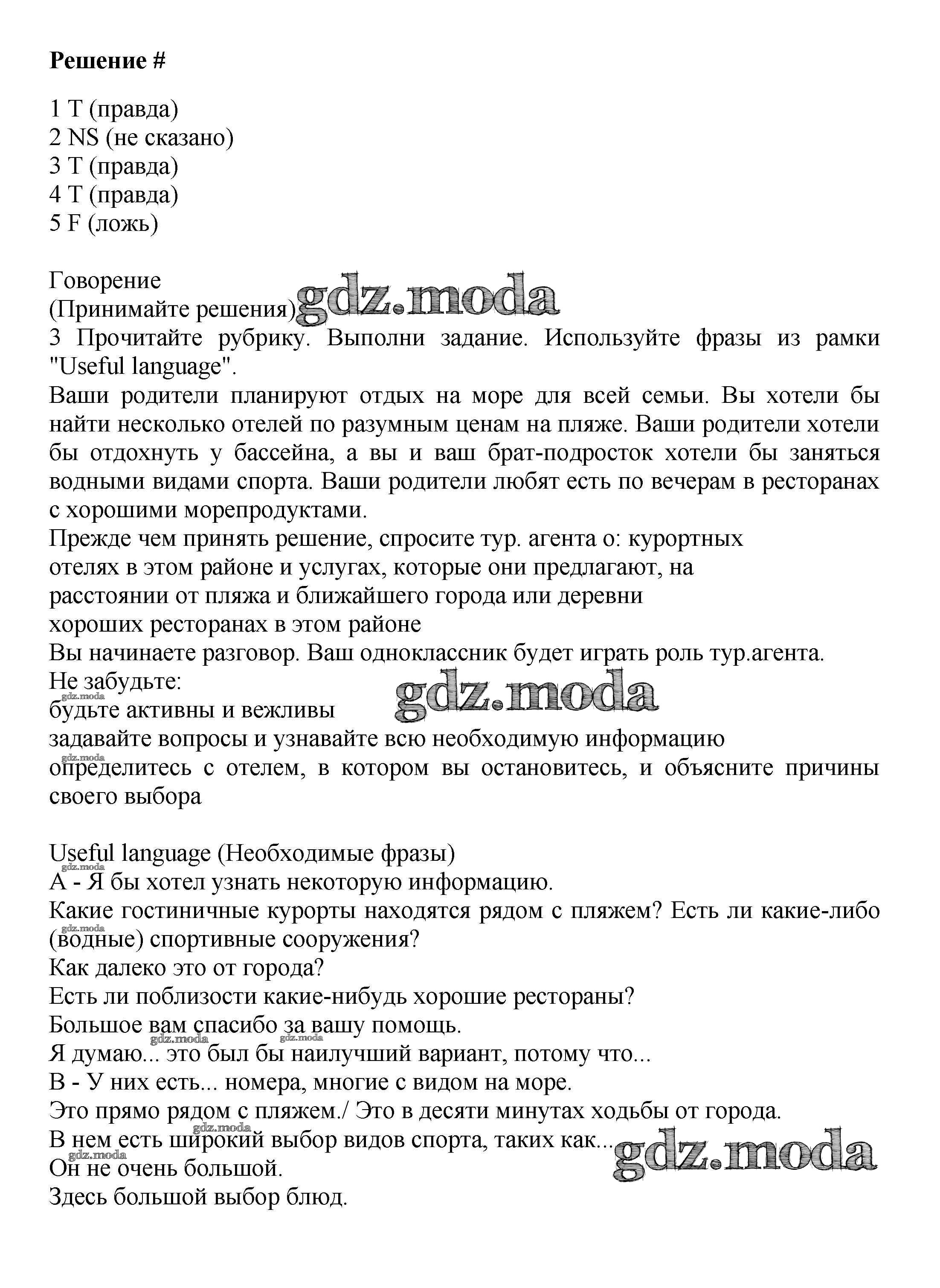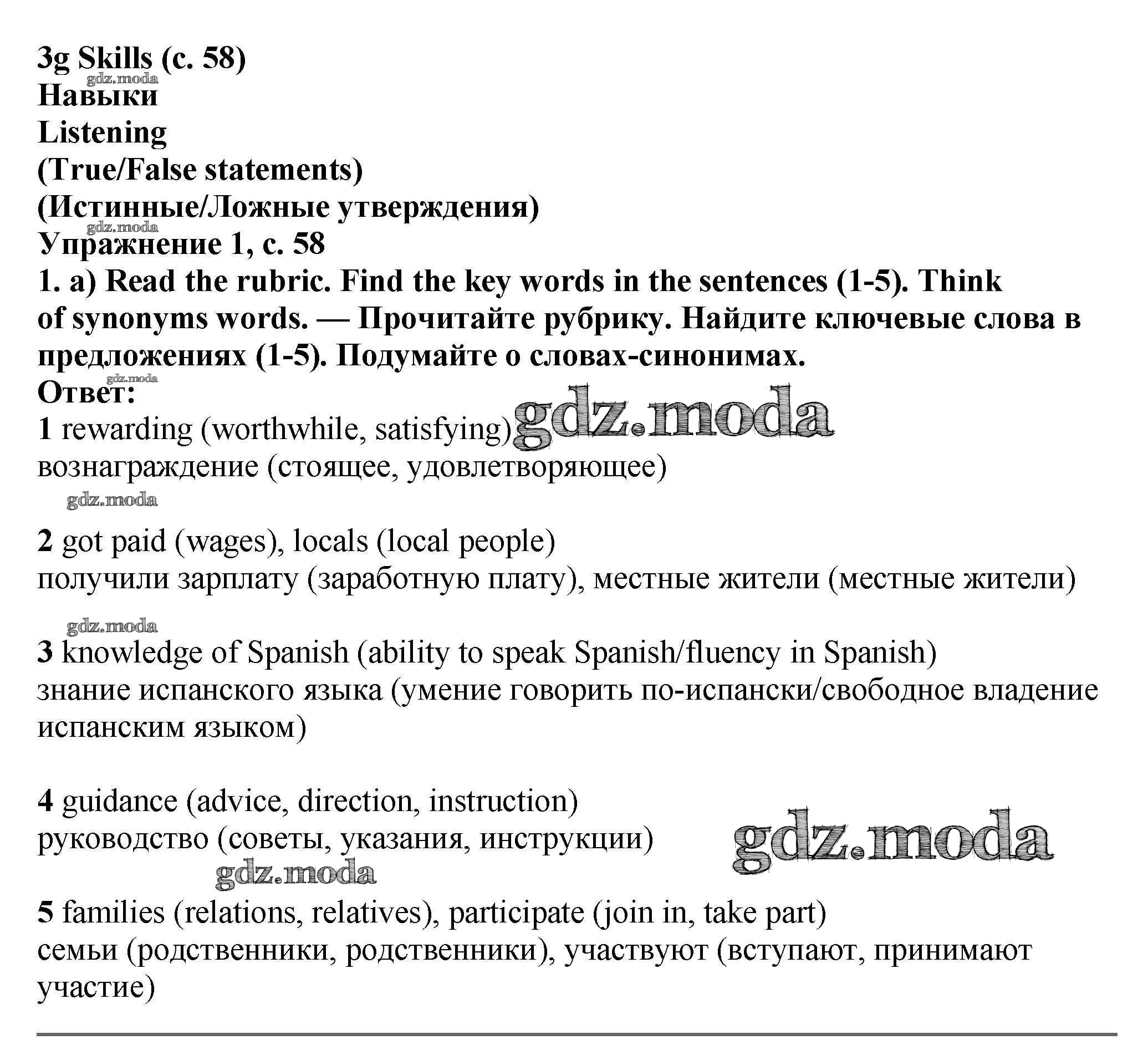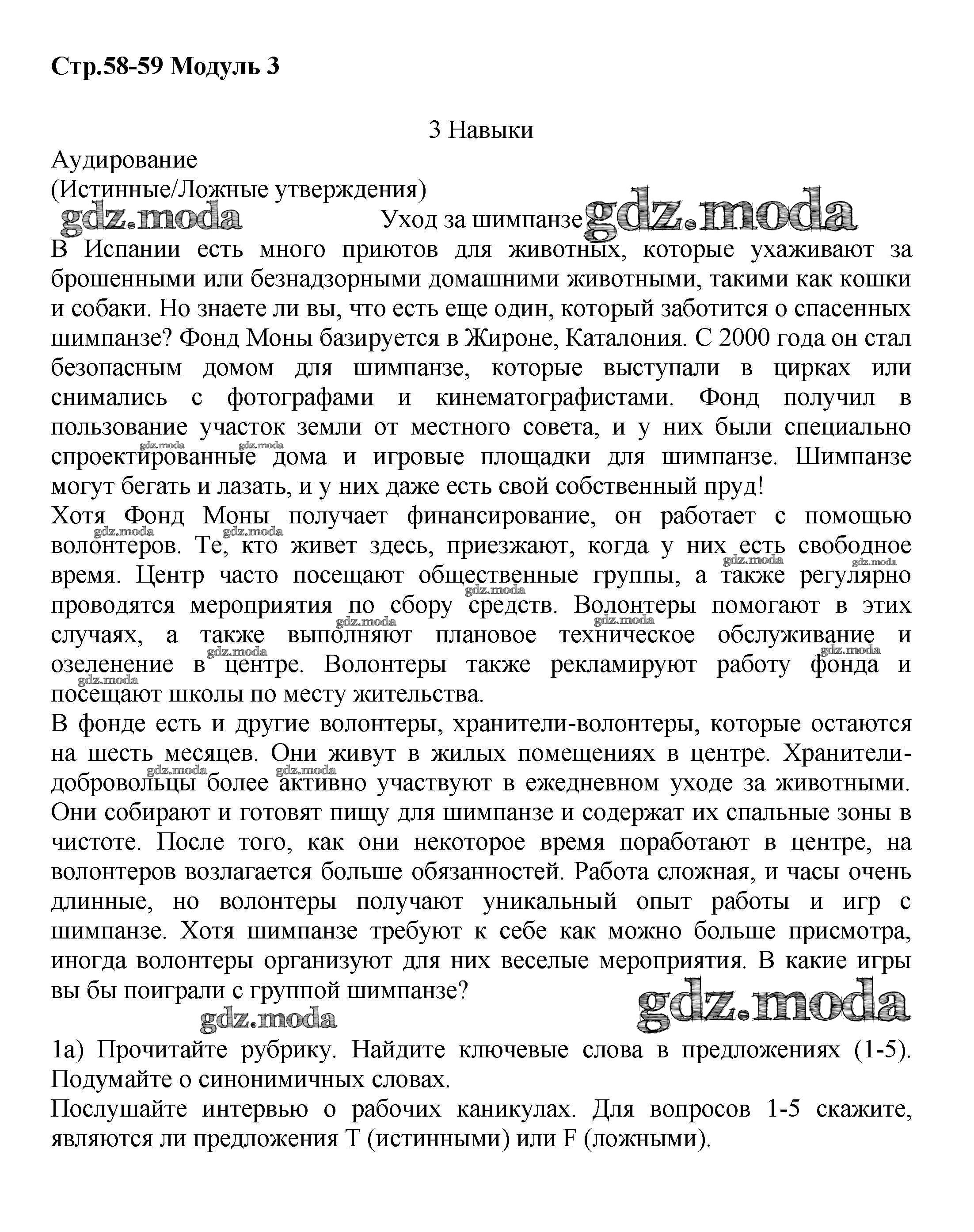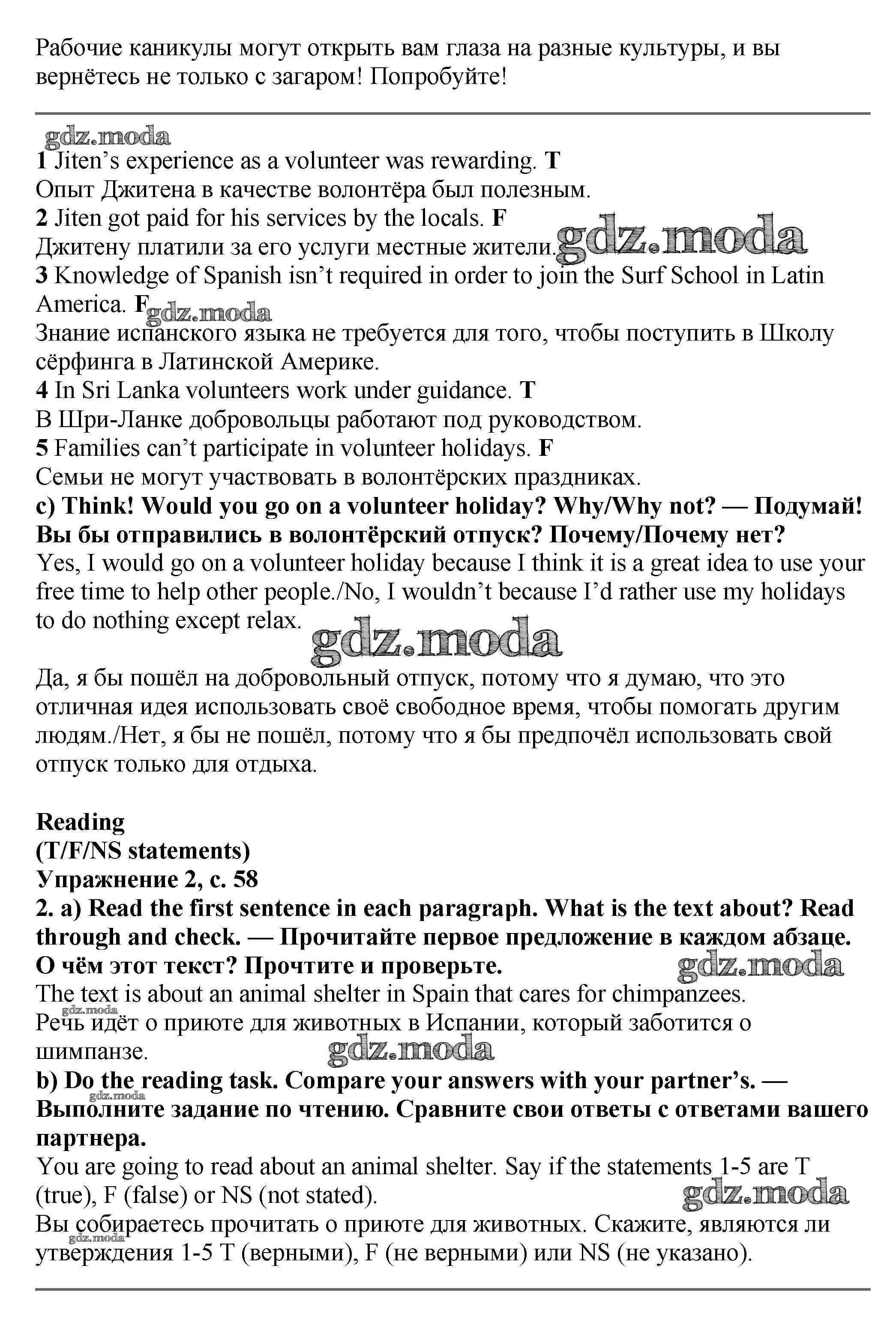 ОТВЕТ на задание № стр.58-59 Учебник по Английскому языку 7 класс Баранова Starlight Углубленный уровень