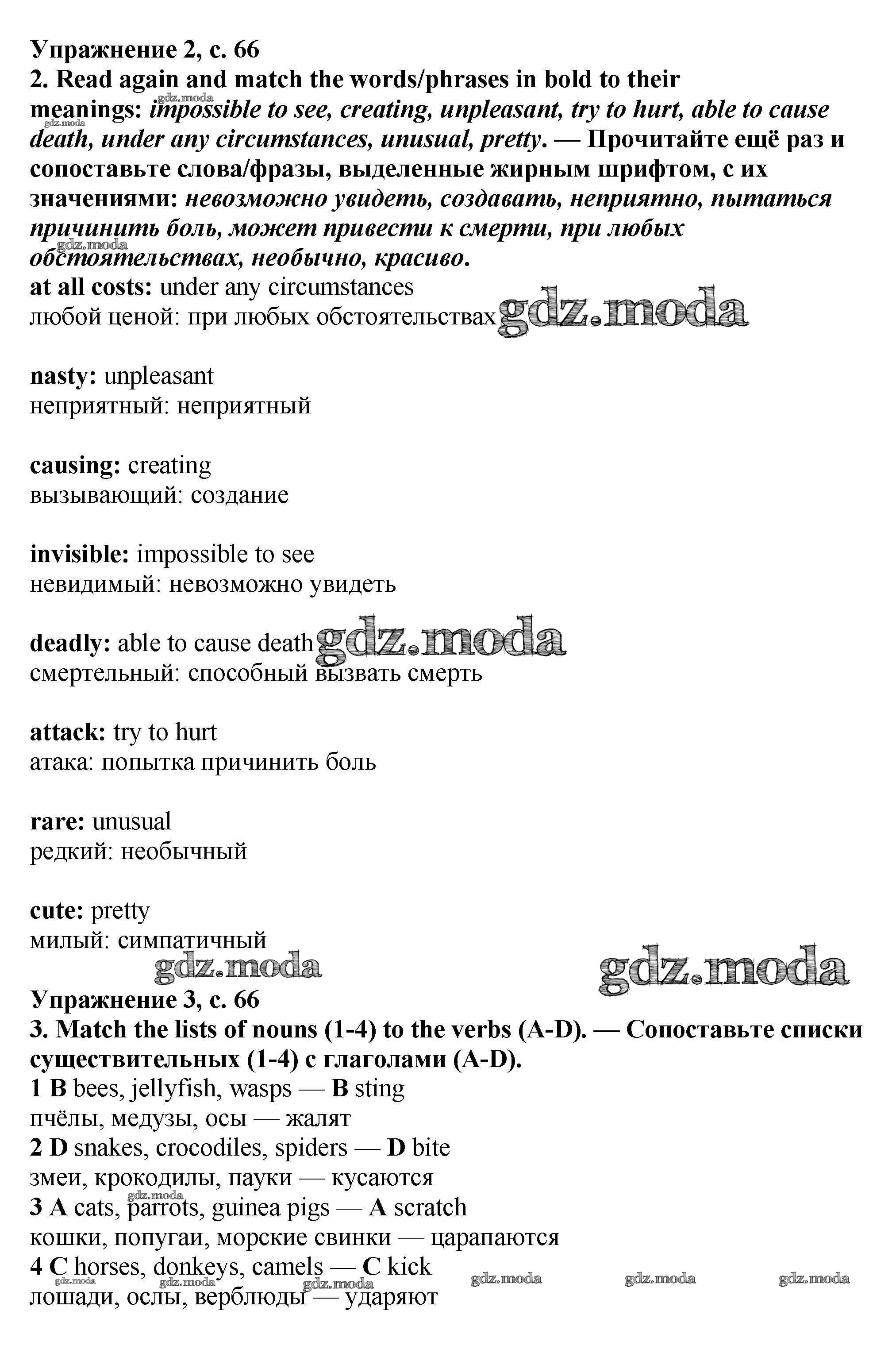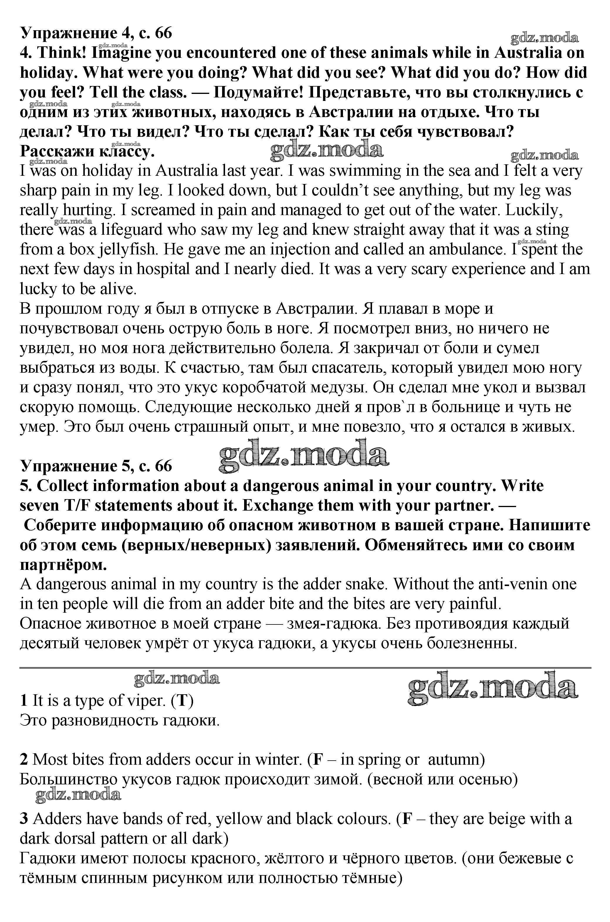 ОТВЕТ на задание № стр.66 Учебник по Английскому языку 7 класс Баранова Starlight Углубленный уровень